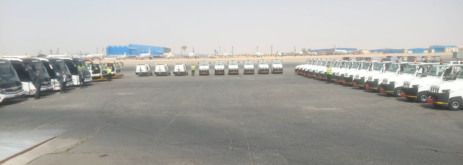 وفي هذا السياق أضاف المهندس إبراهيم فوزي رئيس مجلس إدارة شركة مصر للطيران للخدمات الأرضية أنه في إطار خطة التطوير التي تنتهجها الشركة لتطوير وتحديث ورفع كفاءة جميع الأجهزة والمعدات المستخدمة انضمت للشركة 37 سيارة مختلفة الأنواع مقسمة علي النحو التالي ٢١ جرار لحقائب السفر و٦ معدة إدارة كهربائية للطائرات و٤ معدة بوشباك لجر الطائرات و٦ اتوبيسات لنقل الركاب داخل المطار وجارى استكمال المعدات الجديدة تباعًا.