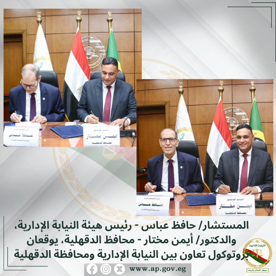 بروتوكول تعاون بين النيابة الإدارية ومحافظة الدقهلية