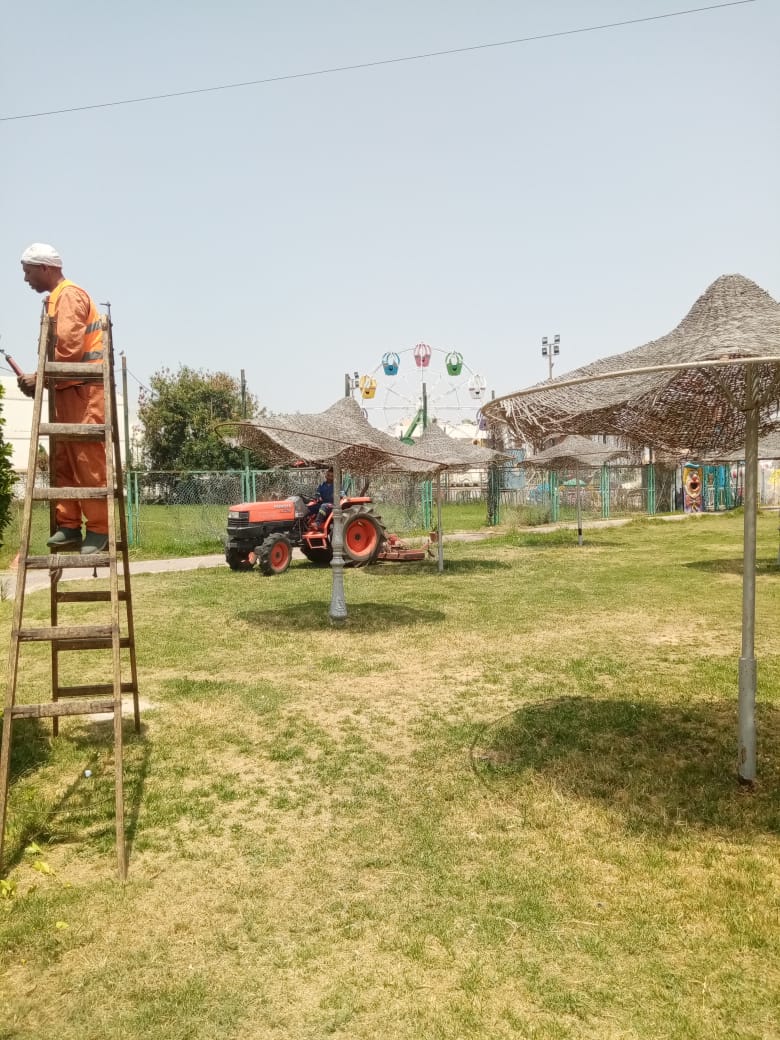 كما تم صيانة المسطحات الخضراء، وقص وتهذيب الأشجار بنادي الفيروز والتعاون؛ استعدادًا لشم النسيم.