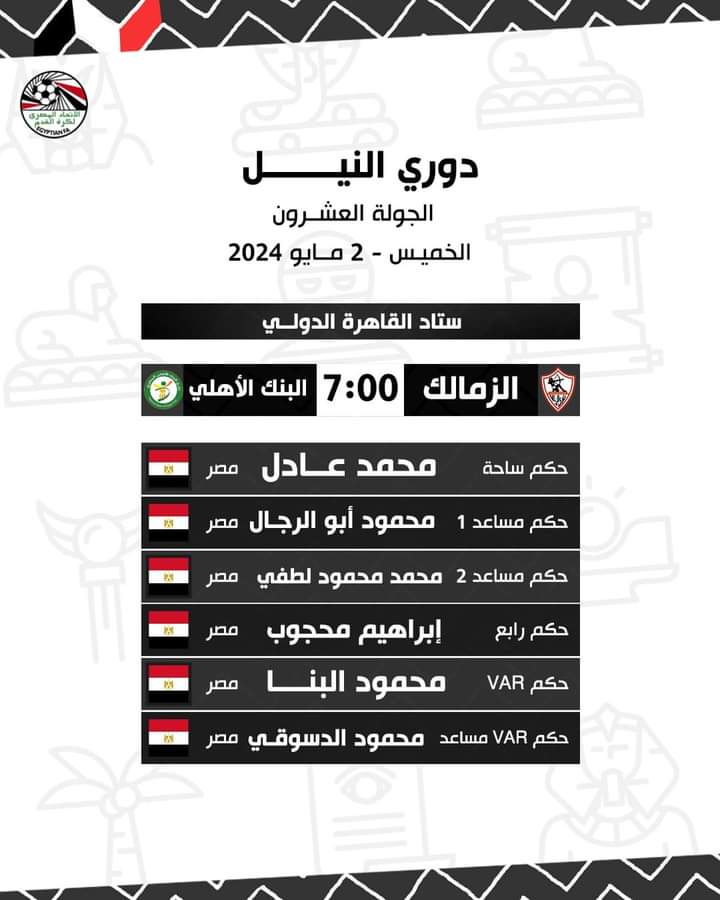 حكام مباراة الزمالك أمام البنك الأهلي