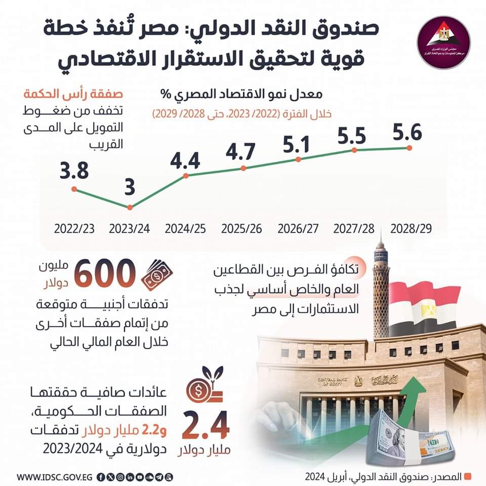 صندوق النقد الدولي: مصر تنفذ خطة قوية لتحقيق الاستقرار الاقتصادي (إنفوجراف)
