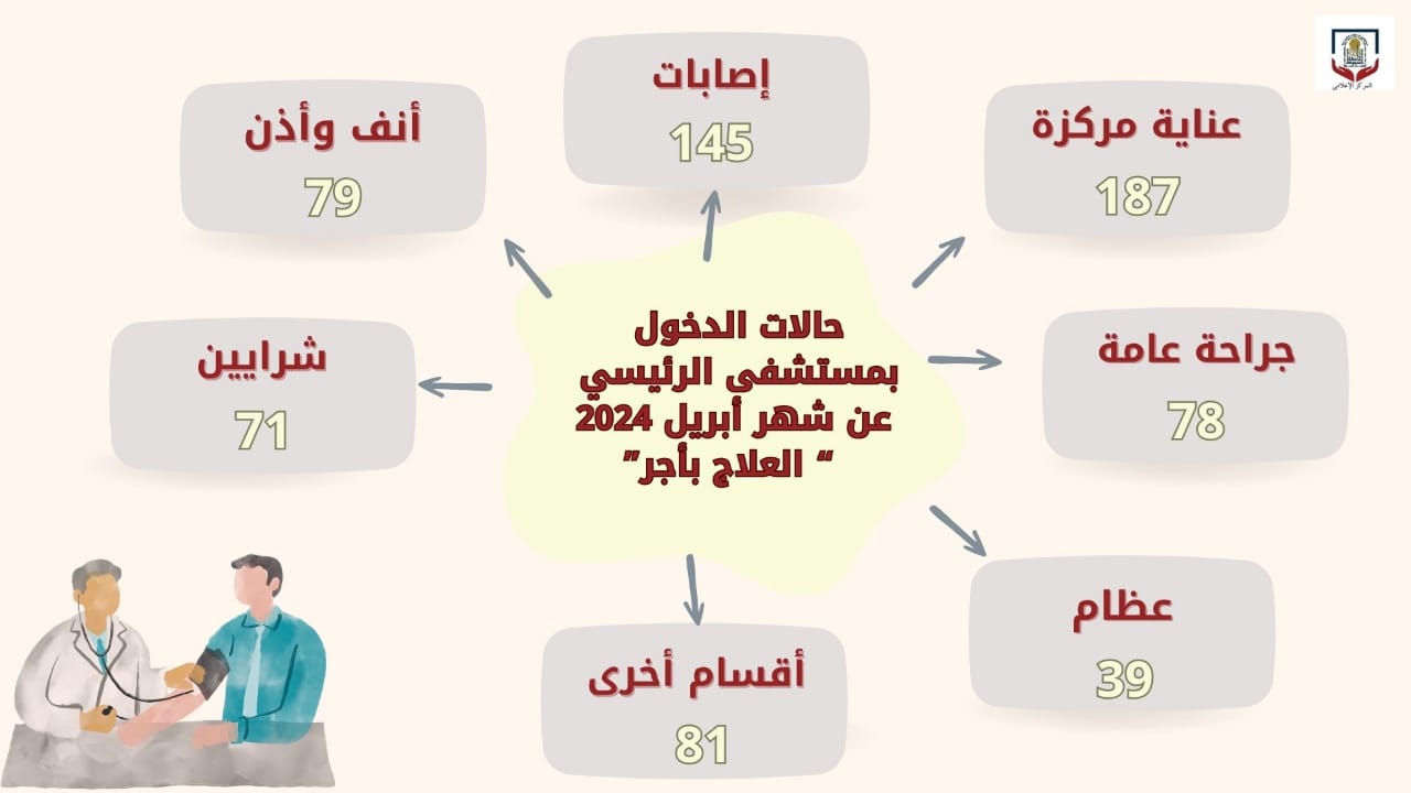 المستشفى الرئيسي يسجل (680) حالة دخول للعلاج الحر