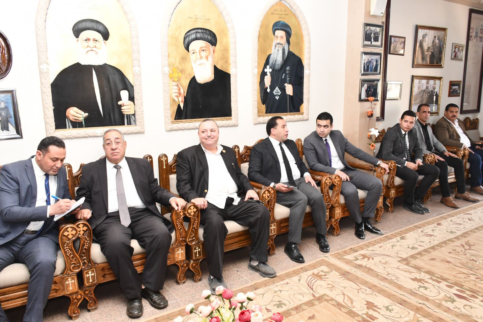 وكان في استقبالهم بالدير، الأنبا إبرام مطران الفيوم، ورئيس أديرة الفيوم، والقمص بولا عطية، والقمص بولا النقالوني وكيلي المطرانية، وعدد من القساوسة ورعاة الكنائس والأديرة بالمحافظة.