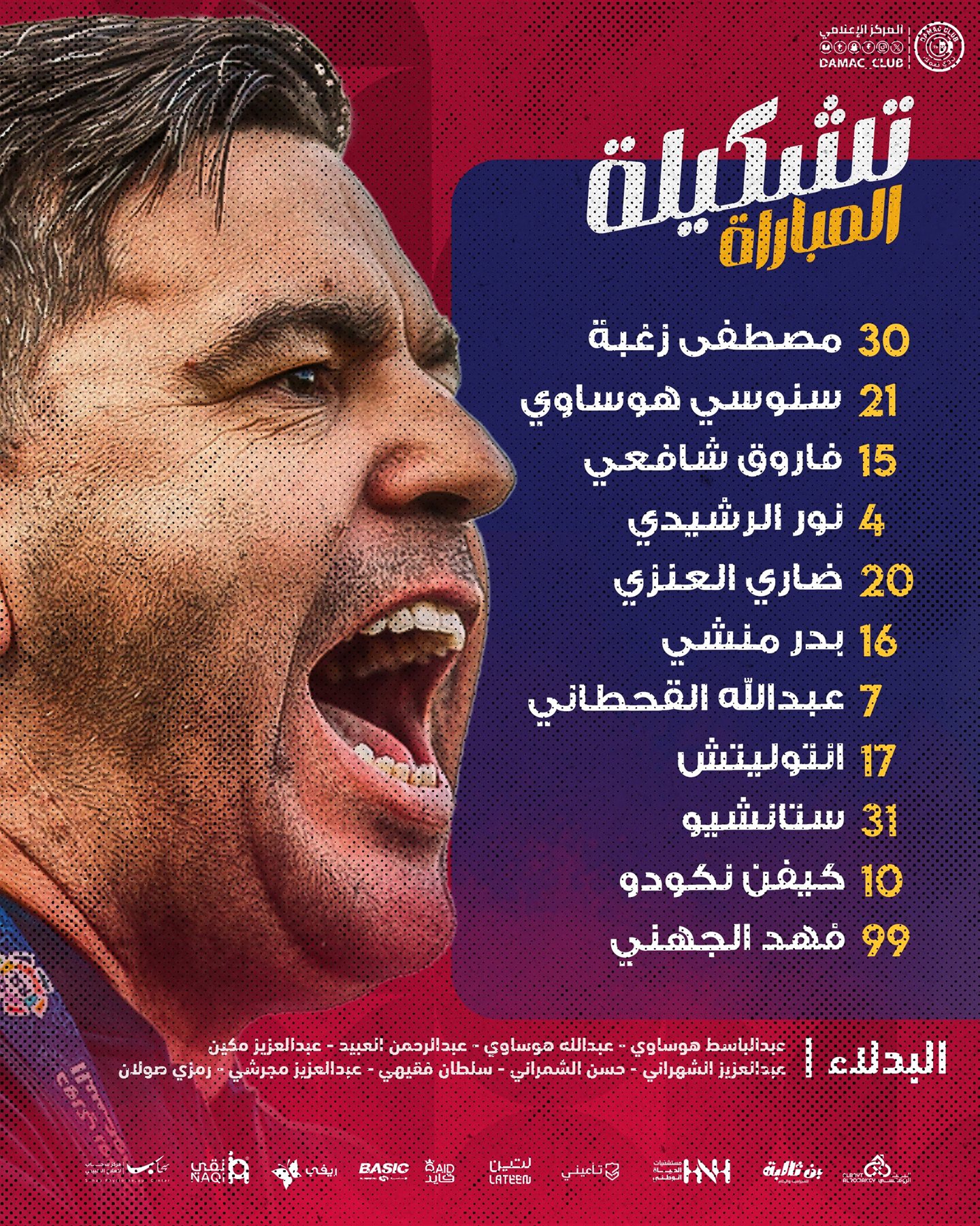 خط الدفاع: عبد الباسط هندي - عبد الله العمار - ميريح ديميرال - روجير إيبانيز.