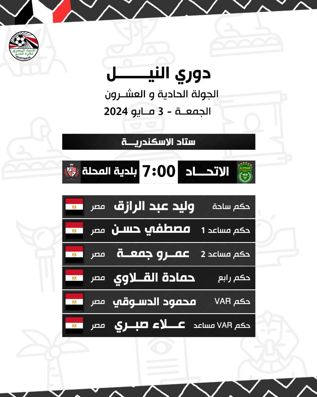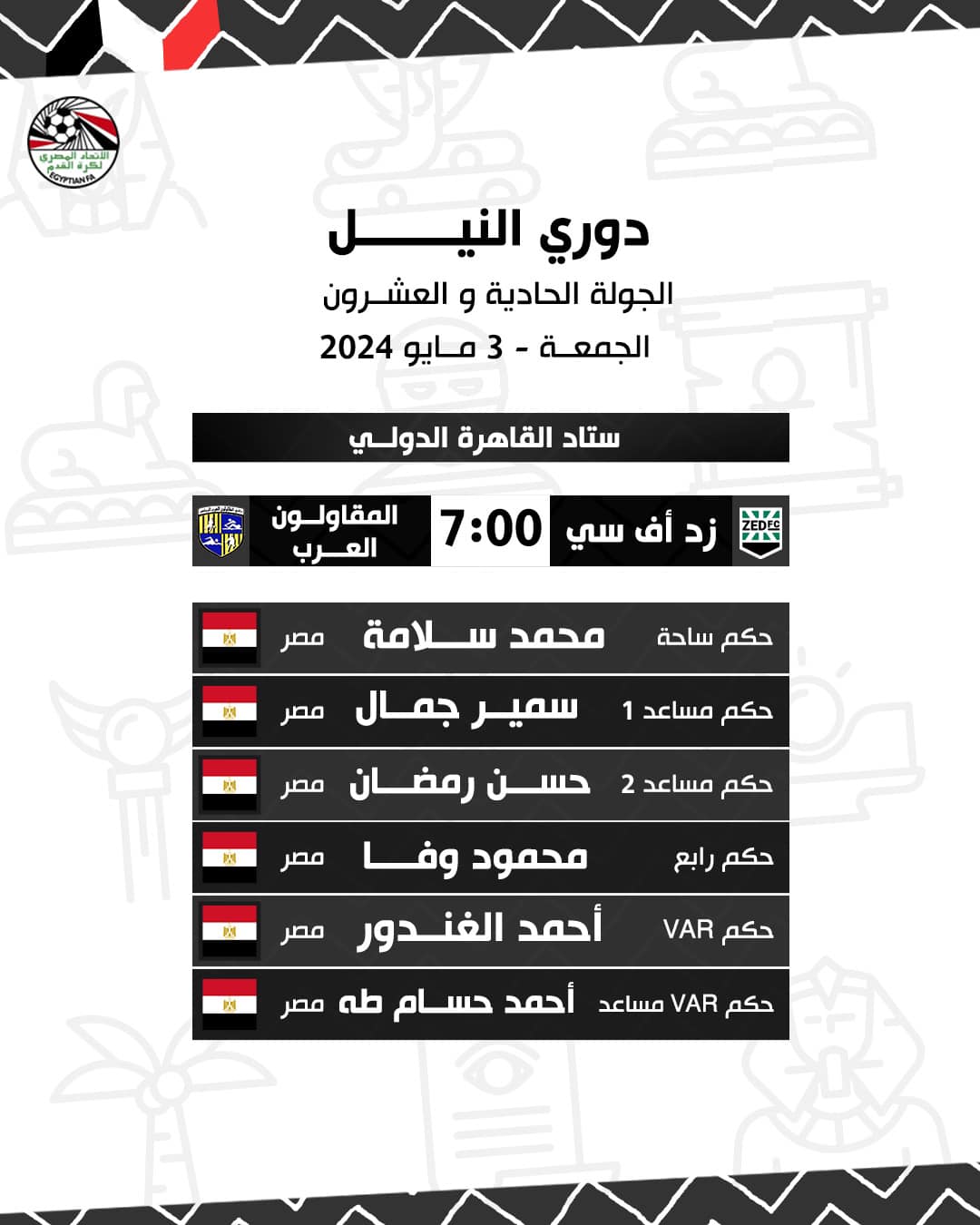 حكام مباراة زد ضد المقاولون