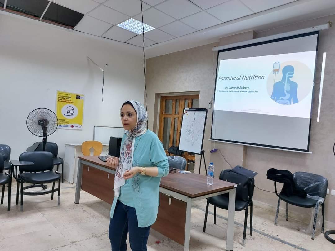 والتعريف بقائمة الأدوية الأساسية بالوحدات،التطعيمات الروتينية والوقائية، تفاعلات الأدوية وآثارها الجانبية، ترشيد استهلاك المضادات الحيوية واقتصاديات الدواء والتغذية الوريدية الخاصة بصيادلة المستشفيات ودور الصيدلى الإكلينيكي فى ضبط الجرعات.