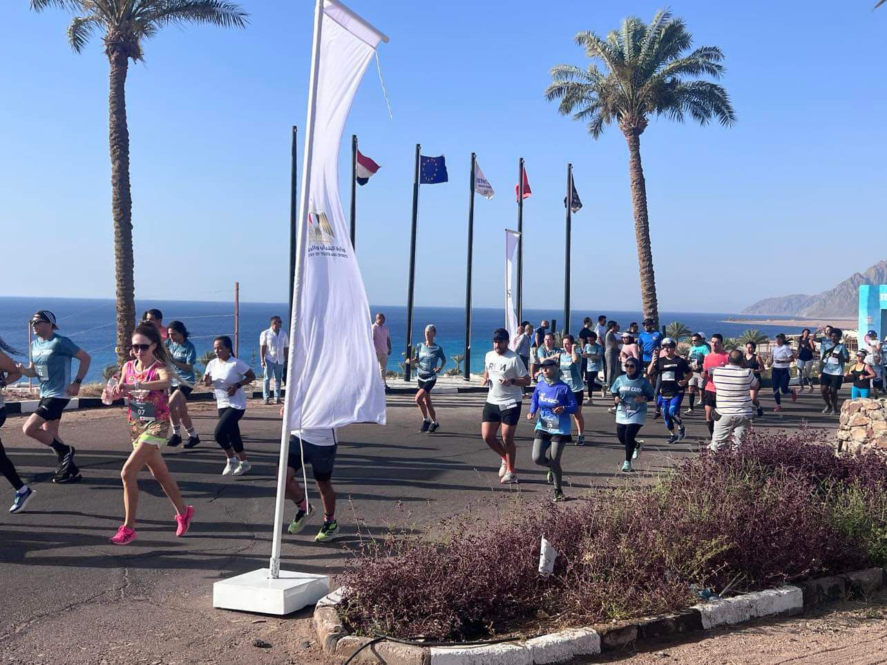 وينقسم السباق إلى ركض لمسافة 5 كيلو مترات، وآخر لمسافة 10 كيلو متر، حيث أقيمت فعاليات السباق بمنطقة اللاجون، وسط انبهار من المشاركين بالطبيعة الساحرة لمدينة دهب، وتنوع المزارات الطبيعية بها.