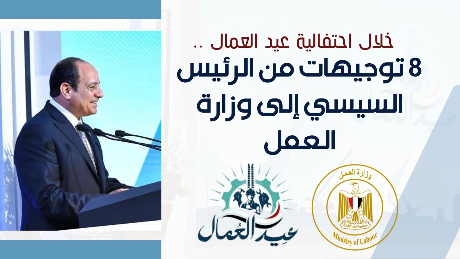 وجه رئيس الجمهورية عبدالفتاح السيسي، خلال احتفالية عيد العمال، أمس الخميس، وزارة العمل بشكل مباشر، بمجموعة من التوجيهات والتكليفات.