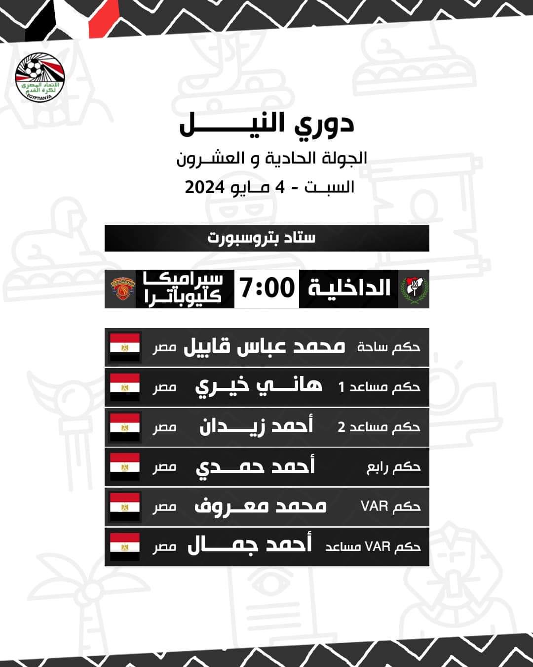 الداخلية ضد سيراميكا كليوباترا -7:00 مساء - السبت 4 مايو - إستاد بتروسبورت