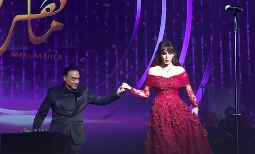 كما أطلت المطربة آمال ماهر بإطلالات ملكية خلال حفلها، إذ ظهرت بفستان باللون الأحمر وآخر باللون الترابي مع اعتمادها على لوك مكياج أنيق وبعض أقراط الألماس.