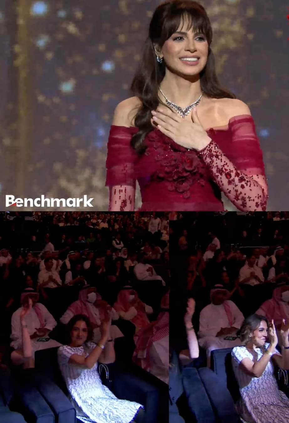 وفي مشهد مميز أظهرت الفنانة والمطربة مي كساب دعمها القوي لآمال ماهر فة حفلها الأول بجدة.