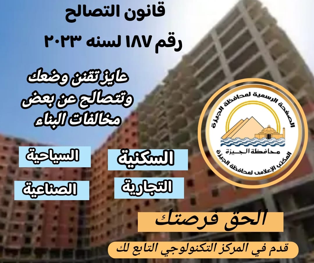 محافظة الجيزة: بدء تلقى طلبات التصالح في مخالفات البناء، الثلاثاء المقبل