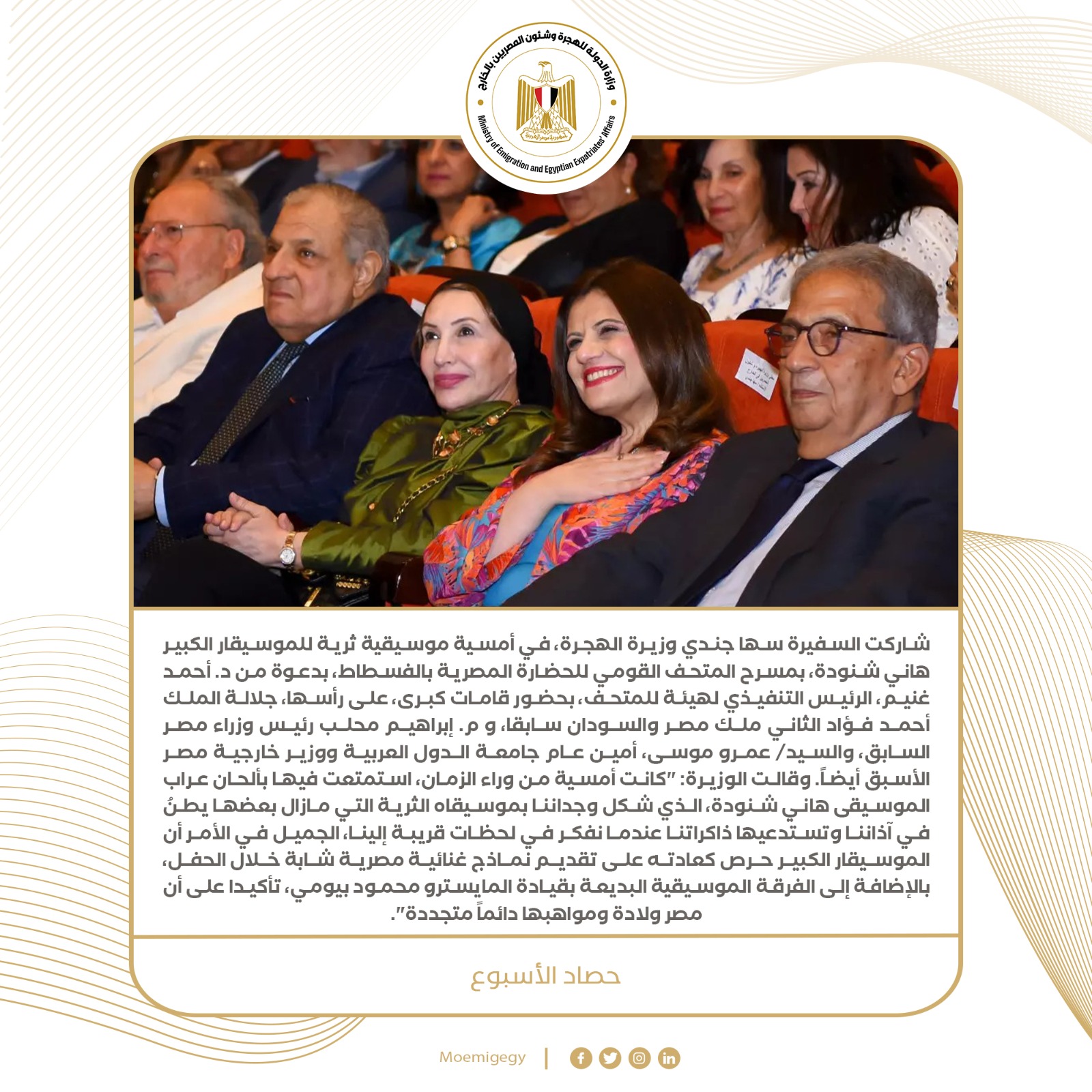 على مدار أسبوع كامل، شهدت وزارة الهجرة نشاطا موسعا للوزيرة السفيرة سها جندي.