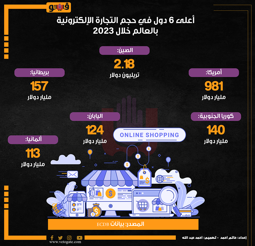 أعلى 6 دول في حجم التجارة الإلكترونية بالعالم خلال 2023 (إنفوجراف) الأحد 05/مايو/2024 - 03:46 م 5/5/2024 3:46:19 PM التجارة الإلكترونية، فيتو حاتم أحمد شارك طباعة 18 حجم الخط شارك طباعة التجارة الالكترونيه حجم التجارة الإلكترونية الصين التجارة الإلكترونية العالمية