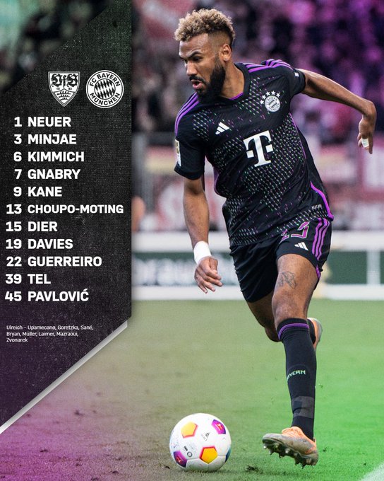 وخاض المدرب توماس توخيل، المدير الفني لفريق بايرن ميونخ، تشكيل فريقه أمام مضيفه شتوتجارت، بكلا من: