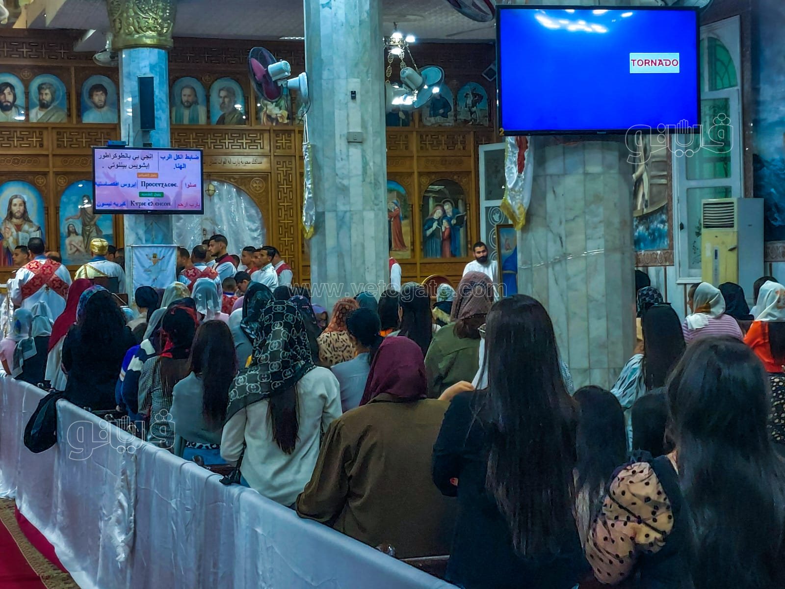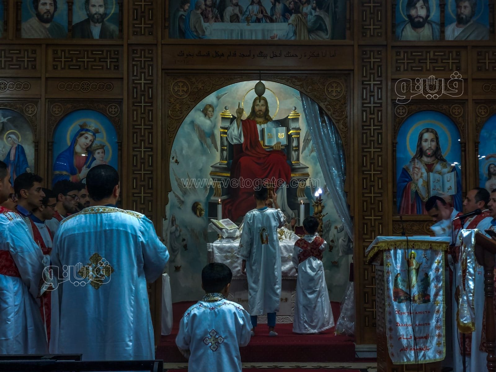 وشعب الكنيسة من الإخوة الأقباط وذلك وسط تشديدات أمنية بمحيط الكنائس والأديرة على مستوى المحافظة، لتأمين دخول الأقباط لحضور القداس.