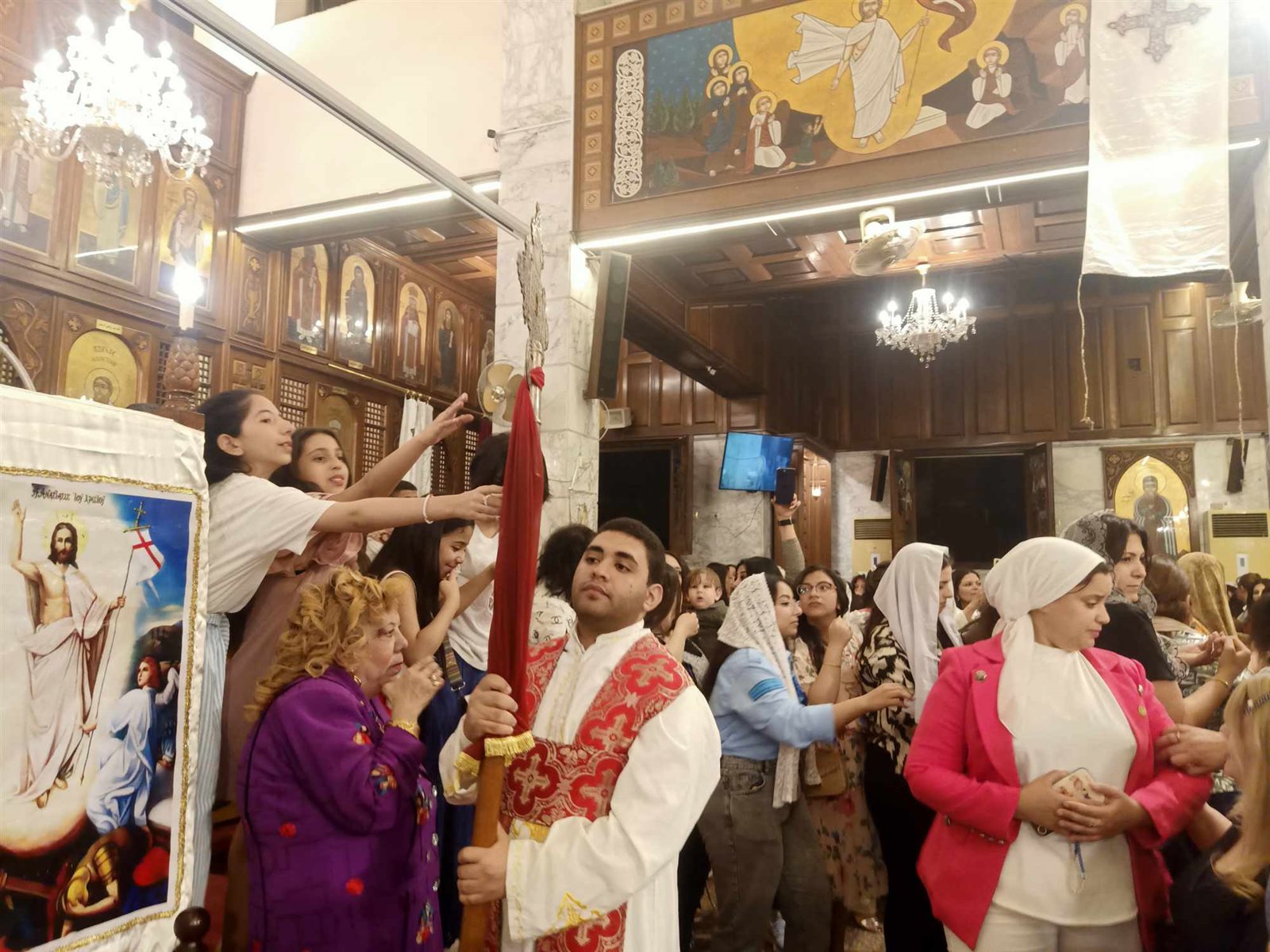 وخرجت زفة القيامة شاهرين صورة المسيح والصلبان وجابت أرجاء الكنيسة.