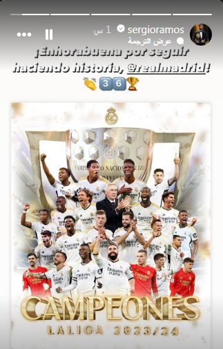 وكتب راموس، عبر حسابه على "إنستجرام": "تهانينا على مواصلة صنع التاريخ، ريال مدريد، الرقم 36".