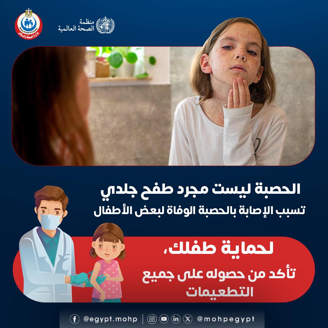 حذرت وزارة الصحة من اهمال تناول تطعيم مرض الحصبة، مؤكدة أن مرض الحصبة ليست مجرد طفح جلدي، بل تسبب الوفاة لبعض الأطفال، لذلك يجب التأكد من حصول الطفل على جميع التطعيمات