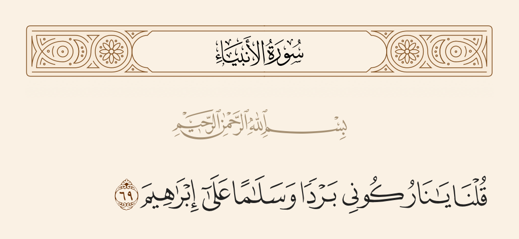 قال تعالى: «قُلْنَا يَا نَارُ كُونِي بَرْدًا وَسَلَامًا عَلَى إِبْرَاهِيمَ».