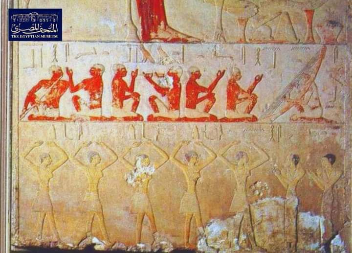 عرض المتحف المصري بالتحرير، قطعة أثرية لمشهد احتفالى من عصر الدولة القديمة، يقدم نموذجًا للفرقة الموسيقية والرقص الآيقاعى المصاحب للأعياد والاحتفالات.