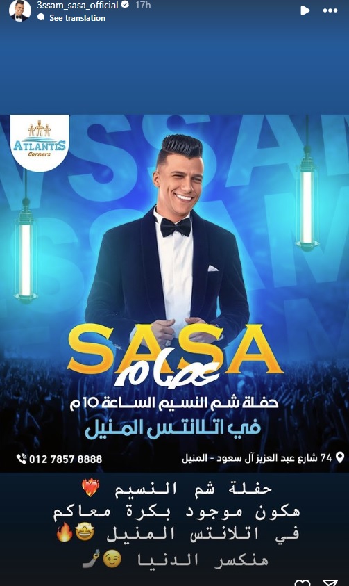 وفي هذا السياق، كان من المقرر أن يحيي مطرب المهرجانات اليوم حفل شم النسيم، داخل، وكشف مصدر مقرب من مطرب المهرجانات، أنه في حاله إلغاء جميع حفلاته سيتم إعادة “العربون” المدفوع لأصحاب الحفلات.