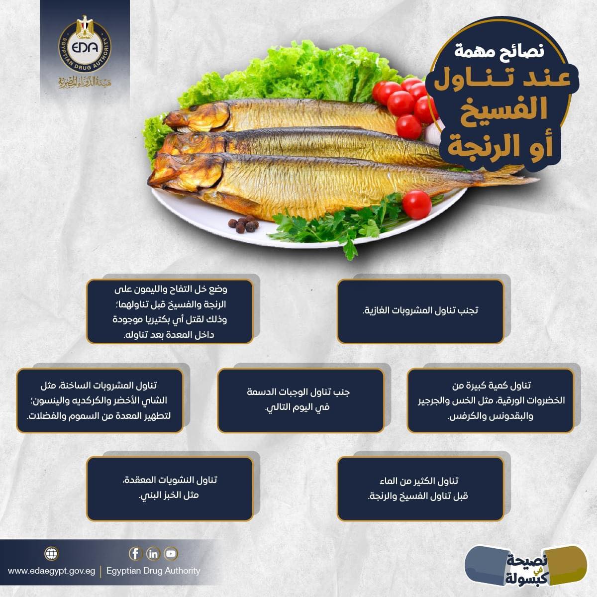 وجهت هيئة الدواء المصرية نصائح للشعب المصري بعيد شم النسيم، يجب اتباعها عند تناول الفسيخ أو الرنجة: