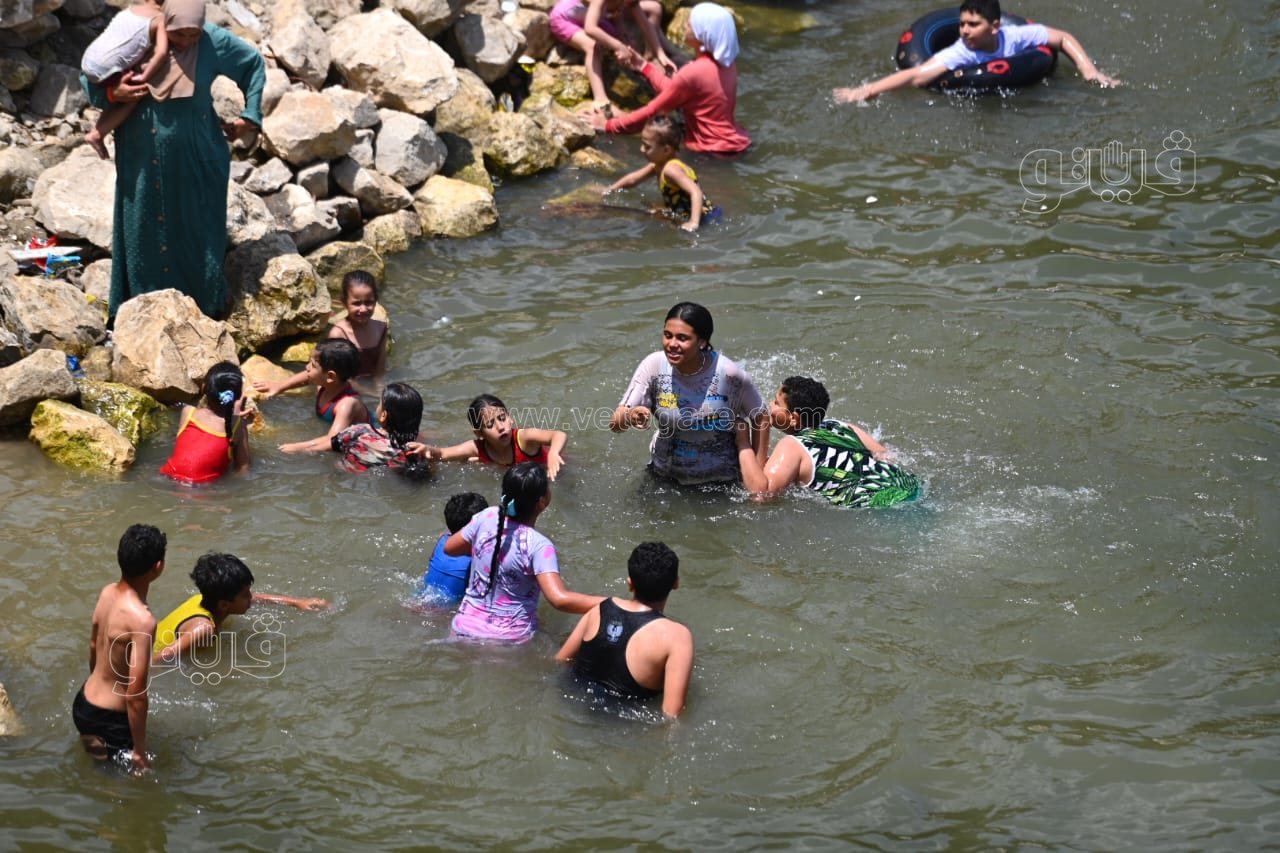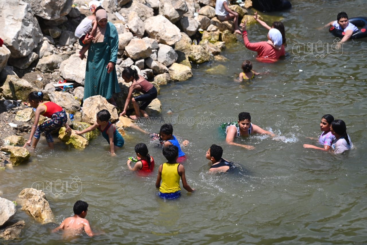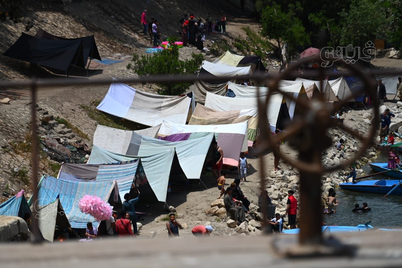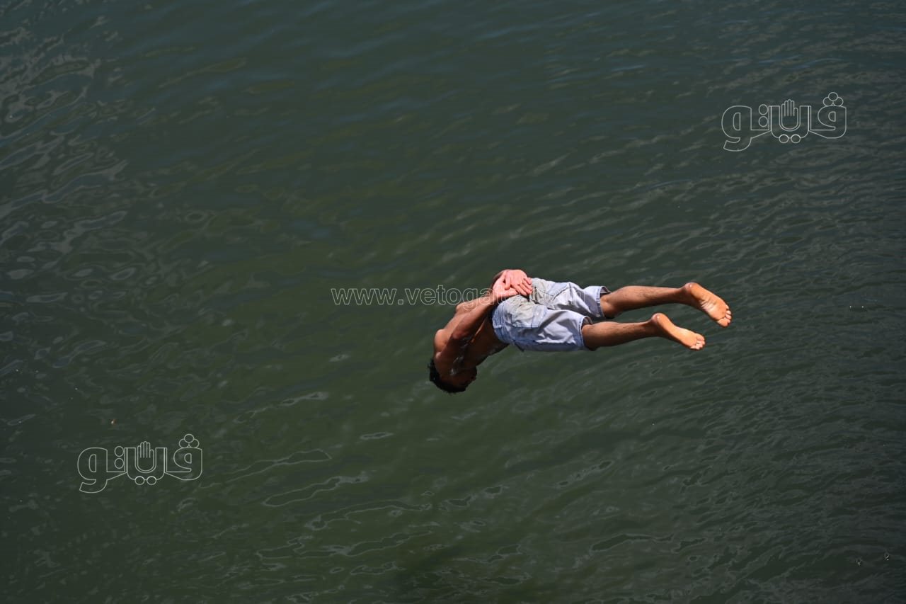 ورصدت عدسة فيتو، نصب الأهالي الخيام بالقناطر الخيرية والإقبال على ركوب المراكب، فيما قفز الأطفال من أعلى الشلالات في النيل هربا من الحر.