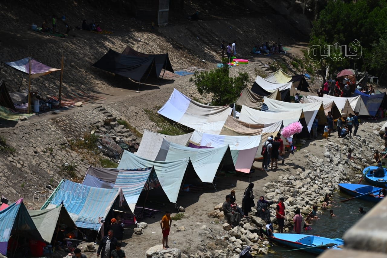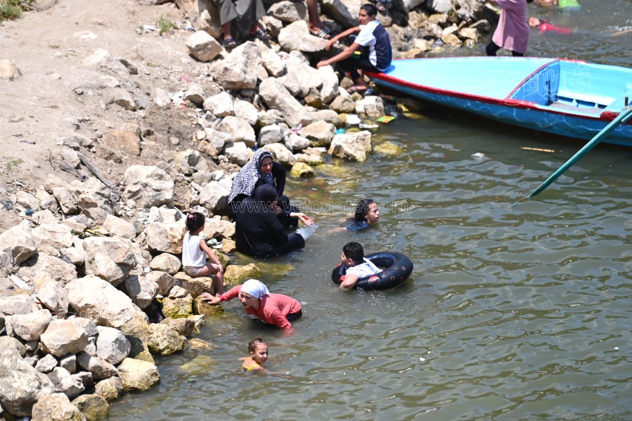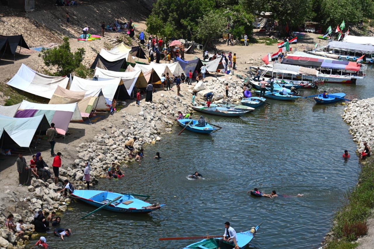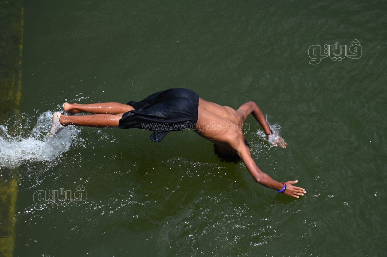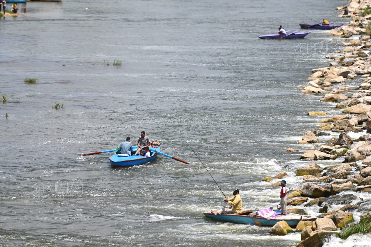 ورصدت عدسة فيتو، نصب الأهالي الخيام بالقناطر الخيرية والإقبال على ركوب المراكب، فيما قفز الأطفال من أعلى الشلالات في النيل هربا من الحر.