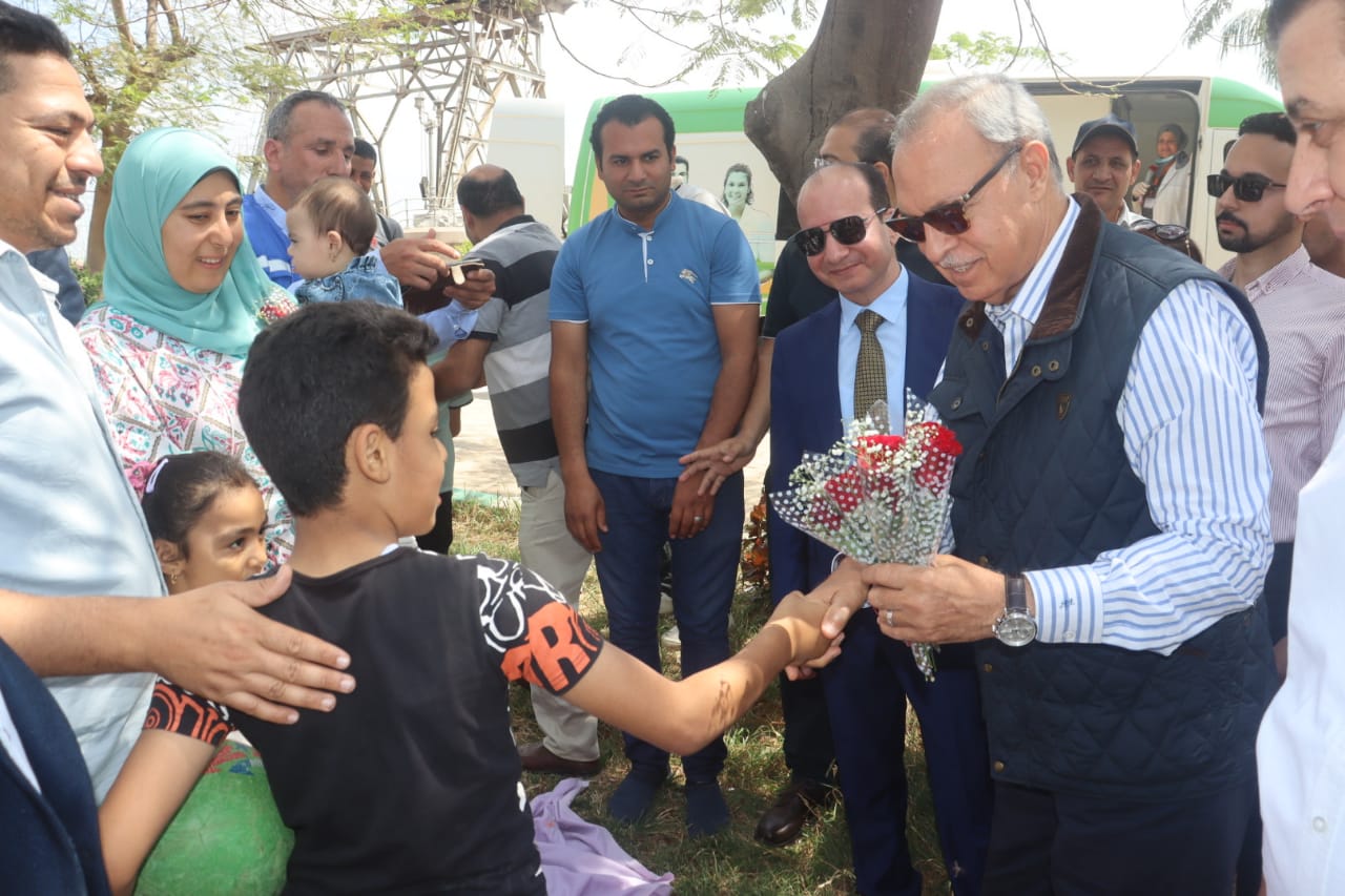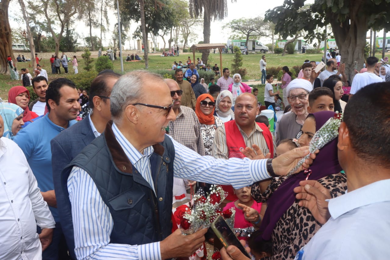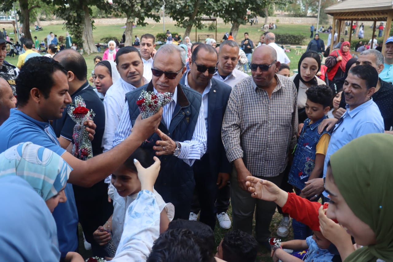 محافظ القليوبية يوزع الورد على المواطنين في شم النسيم (صور)