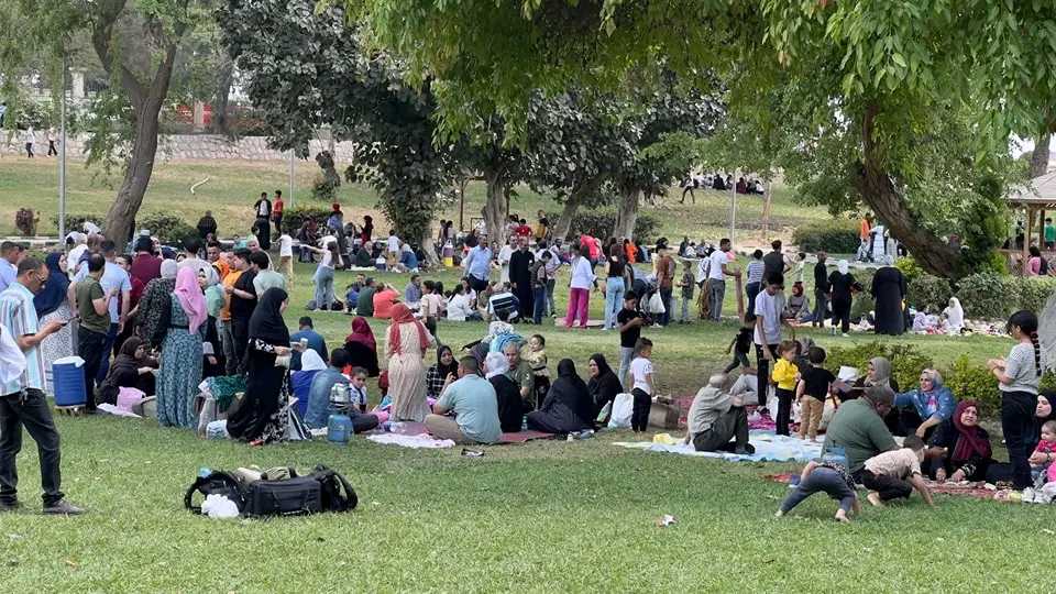وافترشت الأسر الأرض بكافة أرجاء الحدائق، تحت ظلال الأشجار، يتناولون وجبات الرنجة والفسيخ،، مستمتعين بالأجواء الربيعية الخلابة والمساحات الخضراء الواسعة والاغانى الشعبية الصاخبة والعديد من الأنشطة الترفيهية المتنوعة، منها الألعاب الكهربائية وكرة القدم والتقاط الصور التذكارية أمام مزارع الأسماك وسط تواجد أمني مكثف، كما انتشرت سيارة الحماية المدنية وسيارات الإسعاف تحسبًا لأي طوارئ.
