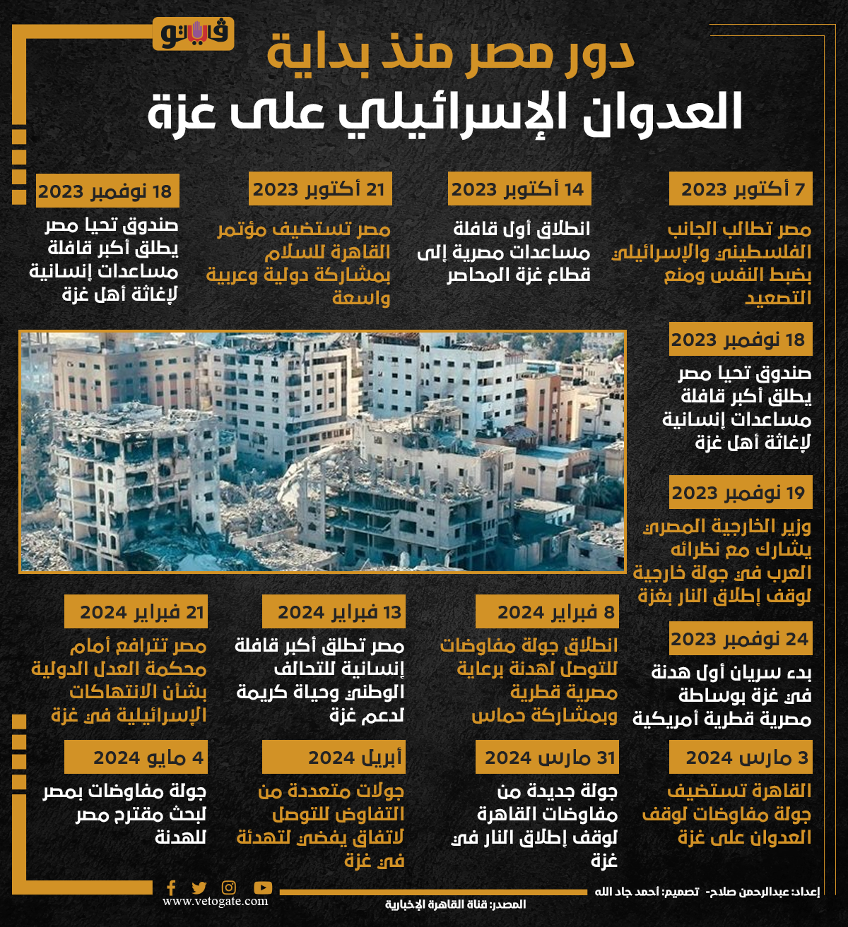 دور مصر منذ بداية العدوان الإسرائيلي على غزة (إنفوجراف) الثلاثاء 07/مايو/2024 - 02:26 م 5/7/2024 2:26:53 PM غزة، فيتو عبدالرحمن صلاح شارك طباعة 18 حجم الخط شارك طباعة غزة قطاع غزة طوفان الأقصى جيش الاحتلال فلسطين