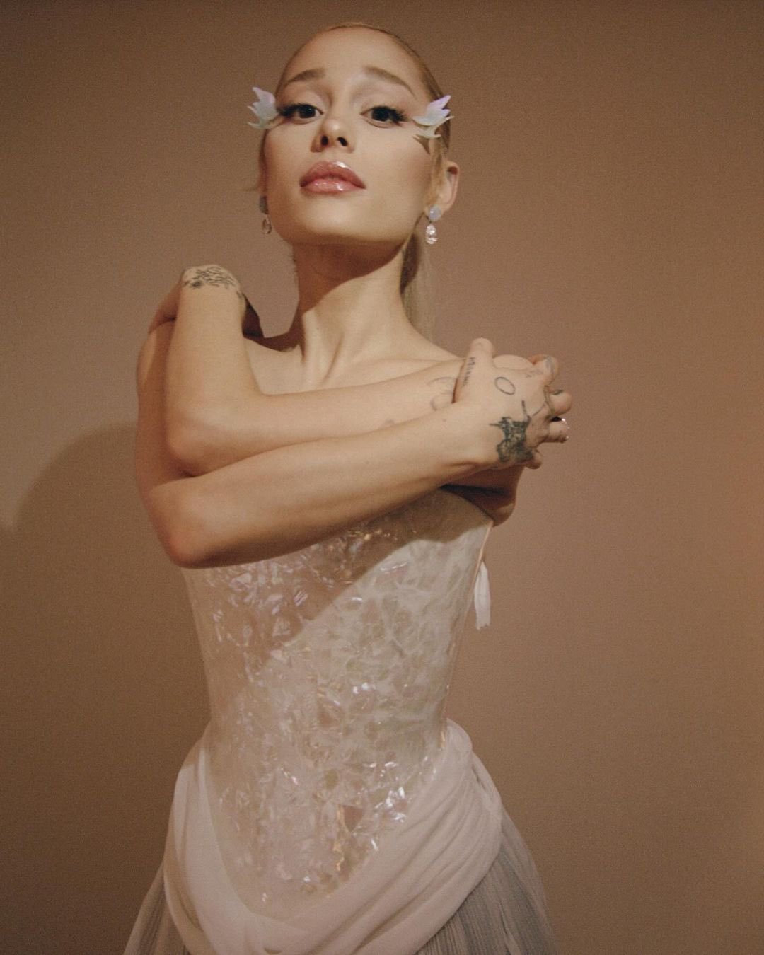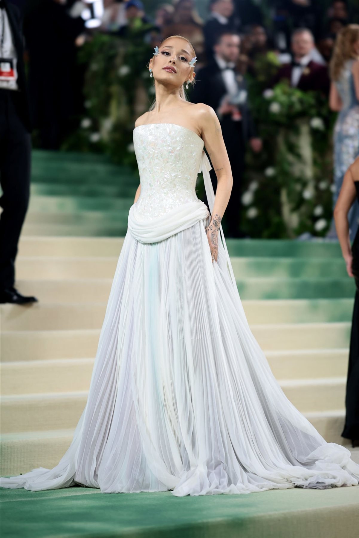 ظهرت مغنية البوب العالمية أريانا جراندي على السجادة الخضراء بفستان أبيض بدون أكتاف وأجنحة صغيرة فوق عينيها لتلفت نظر المتابعين على مواقع التواصل الاجتماعي بمظهرها الملائكي الخلاب.