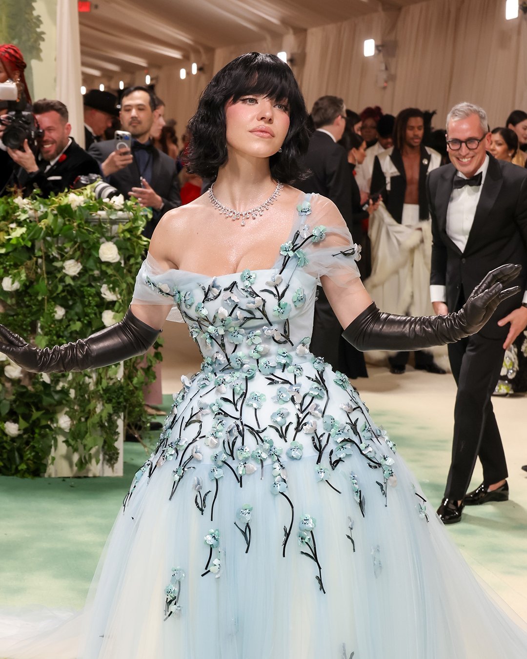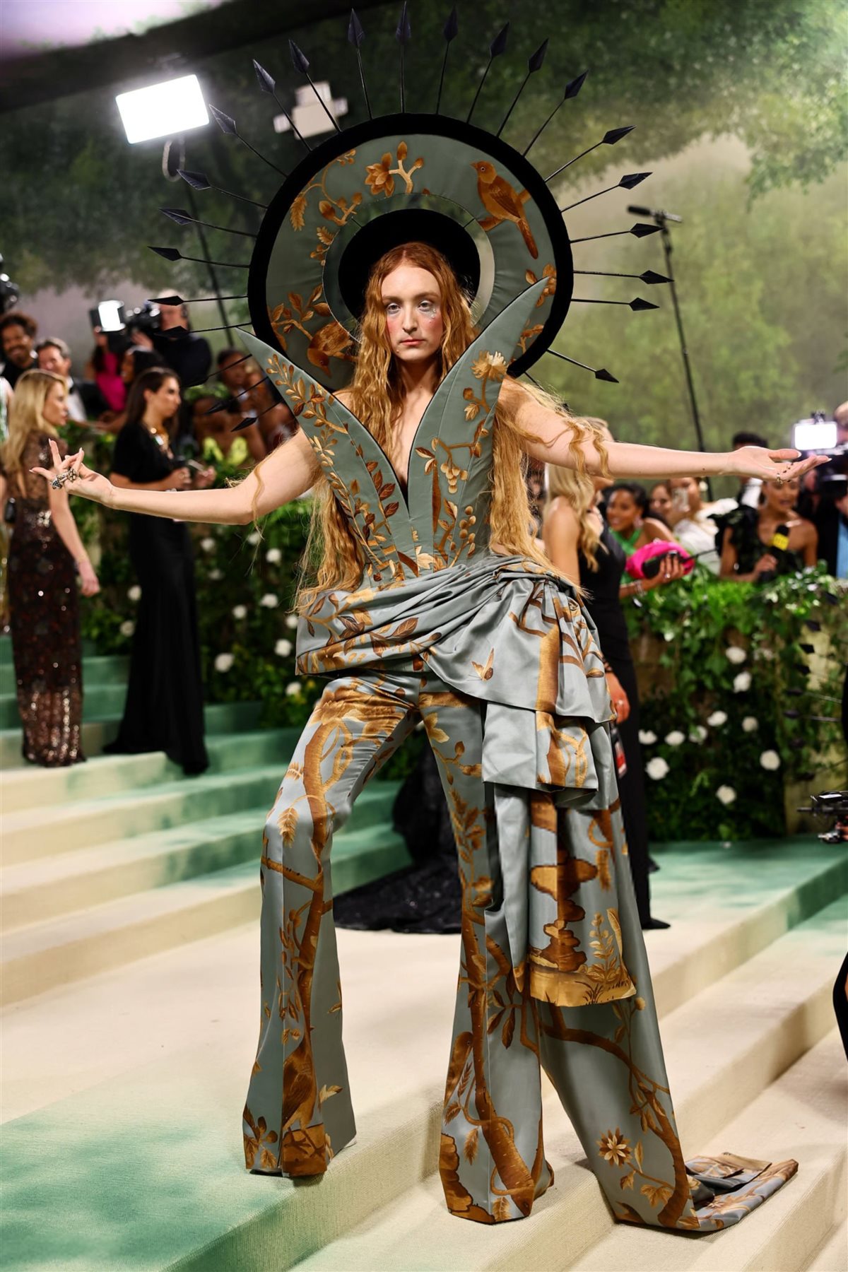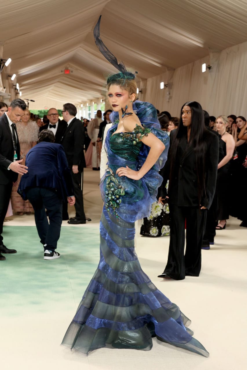 بينما أصبحت عارضة الأزياء والممثلة المشهورة زيندايا حديث كل متابعي الميت جالا بعد أن ظهرت بدون حواجب وفوق كتفها طائر أزرق صغير يتماشى مع فستانها الخلاب والميكاب الجريء الذي اختارته للجالا هذا العام.