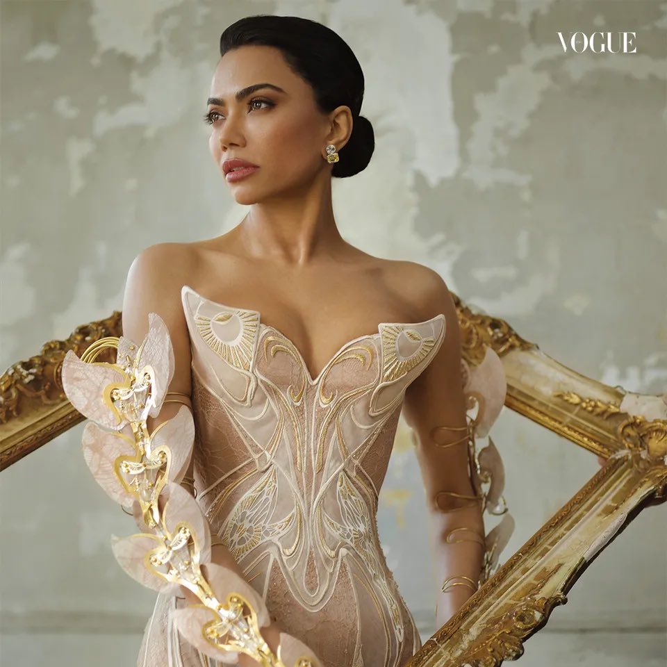 أبهرت الممثلة الهندية Mona Patel الحضور بفستانها الرائع والذي جعلها تبدو كالفراشة التي استمد المصمم إلهامه منها، بالإضافة إلى تفاصيل عديدة على الذراعين والظهر والتي تتحرك كأجنحة الحشرة الجميلة.