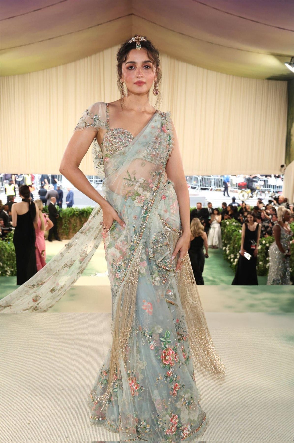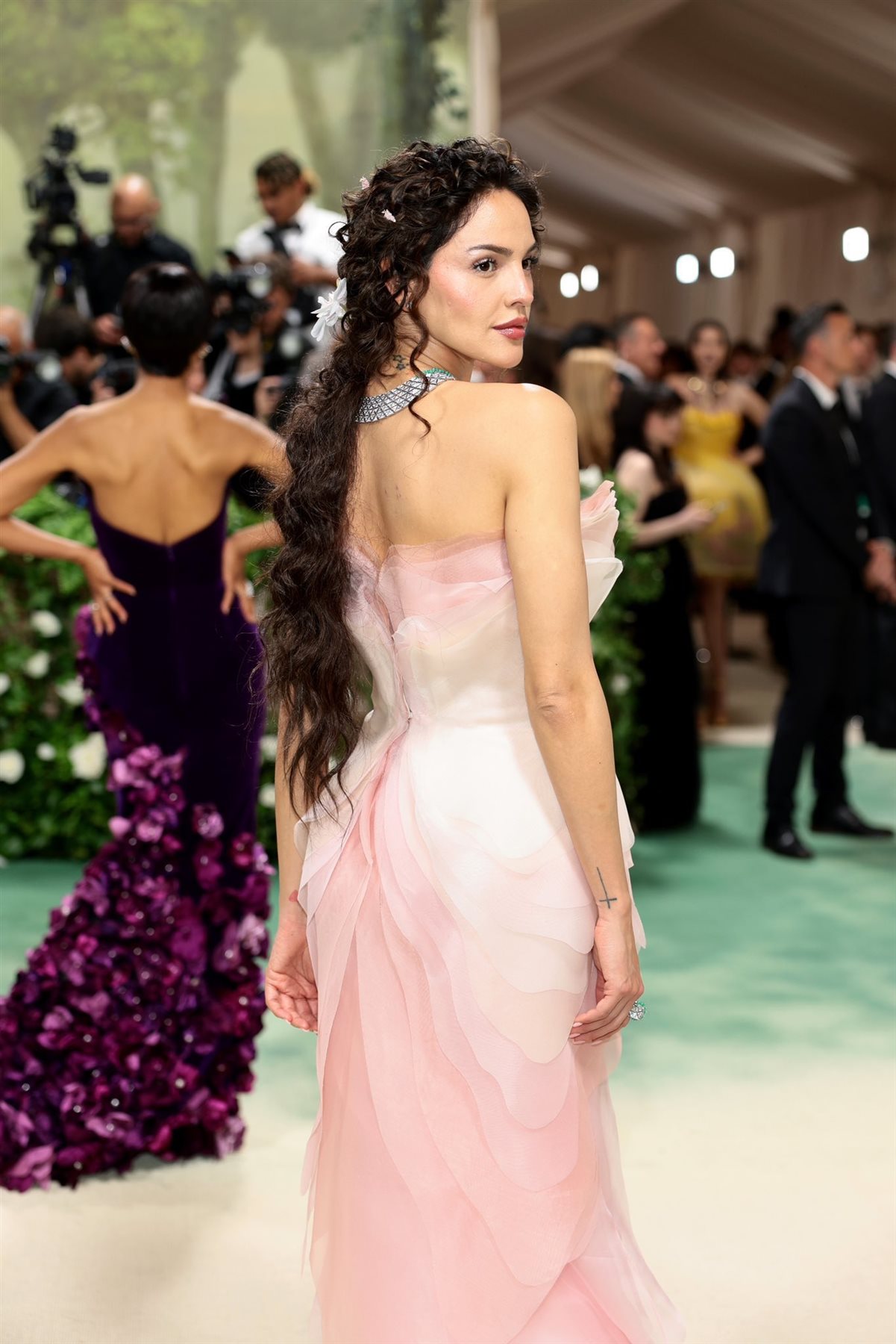 ظهرت الممثلة والمغنية البرازيلية إيزا جونزاليس بفستان رقيق للغاية باللون البمبي الفاتح ويتدرج لدرجات أفتح من نفس اللون والذي راق لعدد كبير من متابعي حفل الميت جالا، حيث قال البعض إنها تشبه بتلة الورد.