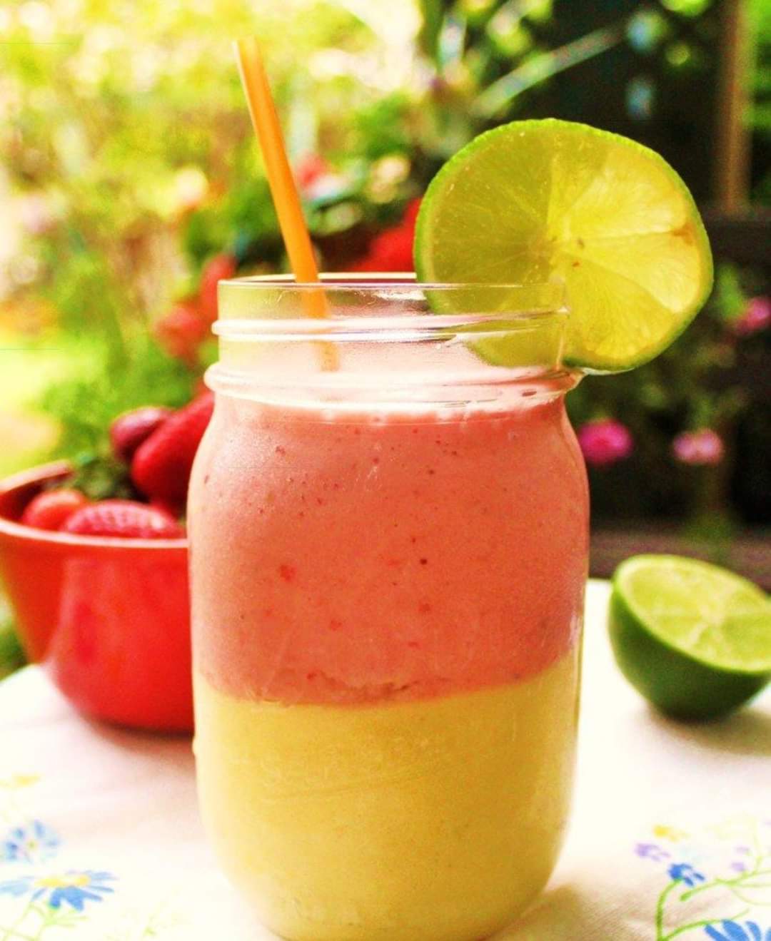 كوب عصير فراولة مثلجة