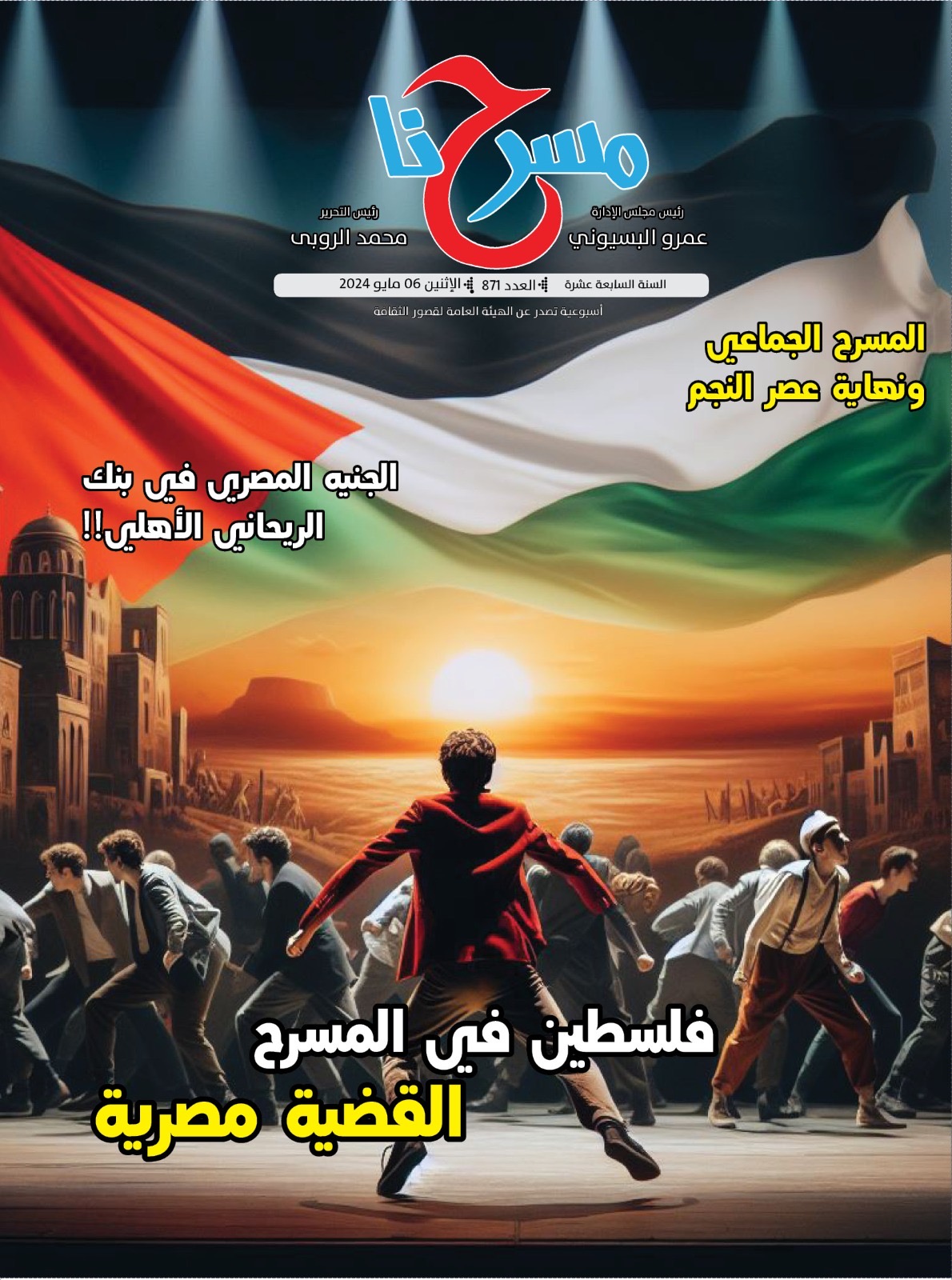 وأعدت الجريدة ملفا خاصا بعنوان "القضية الفلسطينية بوصلة العرب.. فلسطين في المسرح المصري".. "من نحن ومن العدو ؟" إعداد أحمد زيدان.