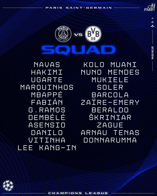 قائمة باريس سان جيرمان لمباراة بروسيا دورتموند في دوري أبطال أوروبا
