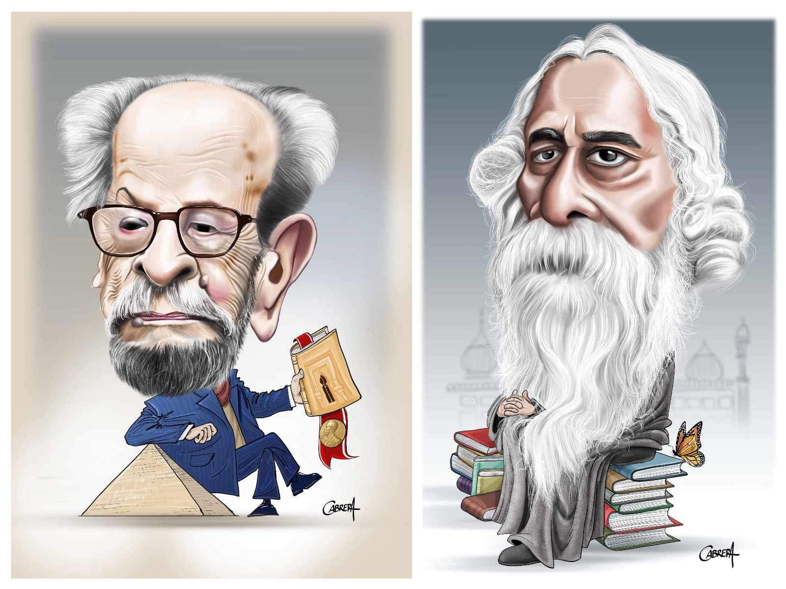 وقد حصل رابندراناث طاغور ونجيب محفوظ، وهما من أبرز الروائيين من الهند ومصر، على جائزة نوبل للآداب عامى 1913 و1988 على التوالي. وبينما كان رابندرانات طاغور أول شخص من خارج أوروبا يفوز بجائزة نوبل فى الأدب، كان نجيب محفوظ أول مصرى يفوز بهذه الجائزة.