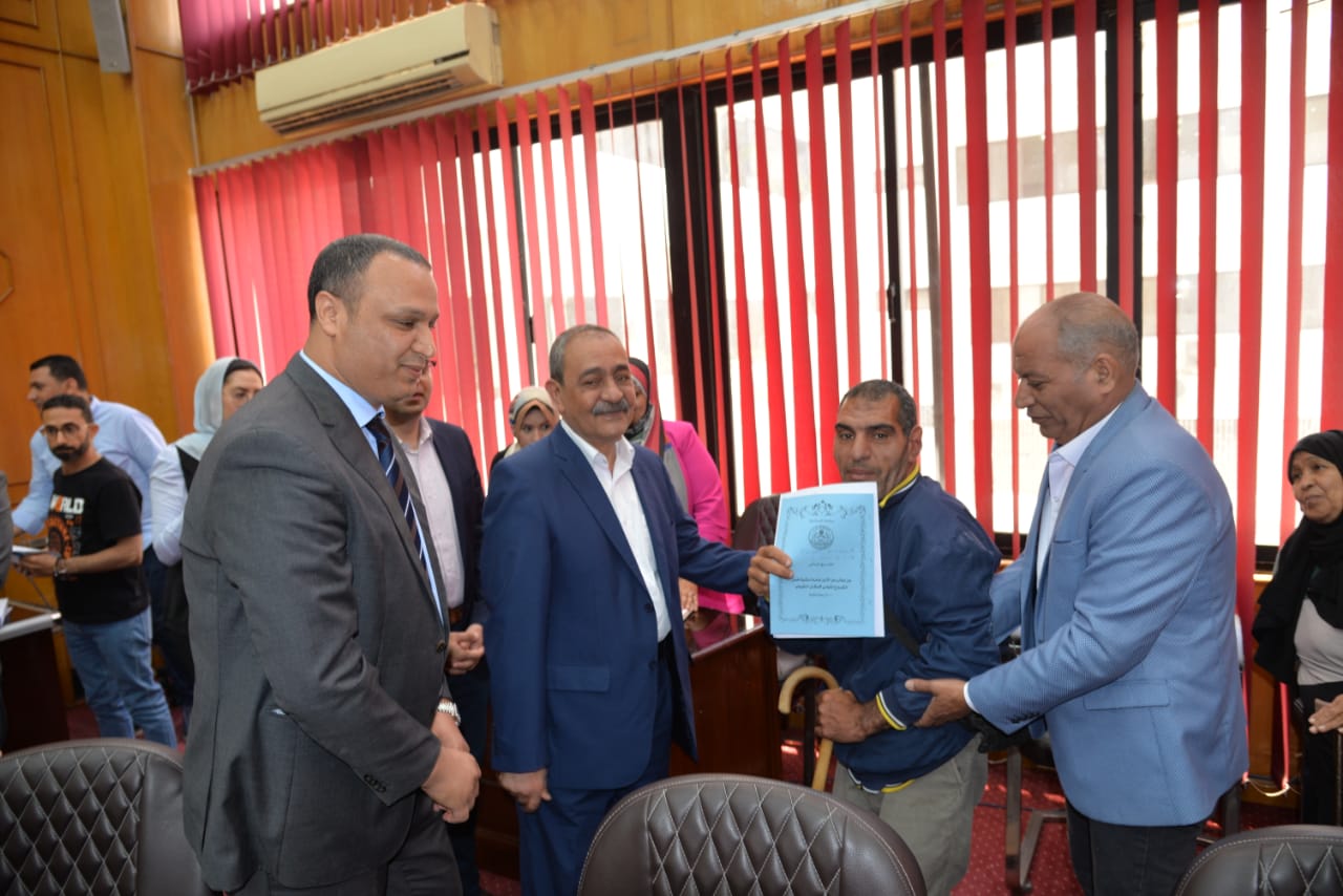 سلم اللواء شريف فهمي بشارة محافظ الإسماعيلية، اليوم الثلاثاء، العقود لـ ٦٣ مواطنا من حاجزي الوحدات السكنية بمشروع إسكان الشباب بالقنطرة غرب.
