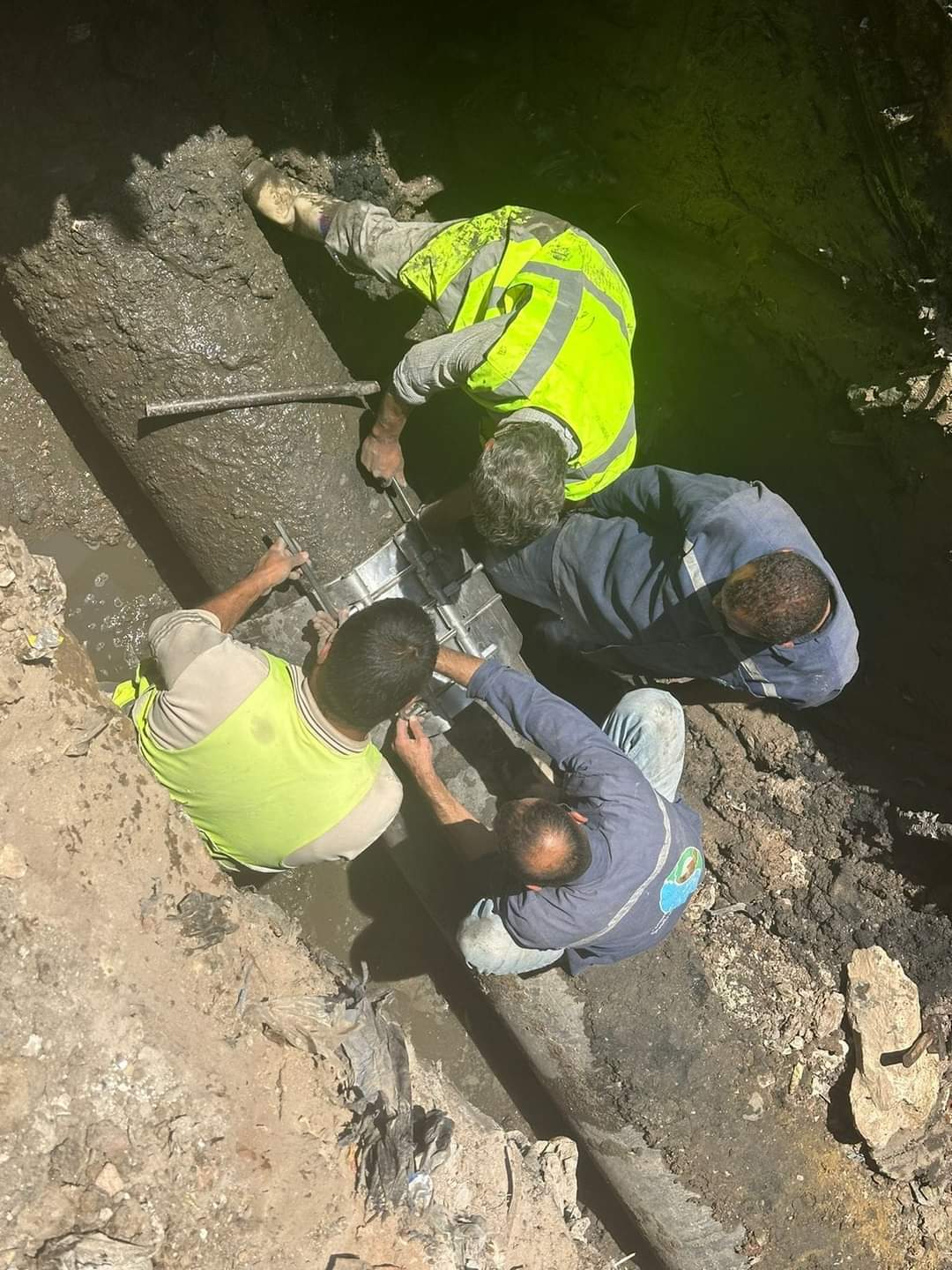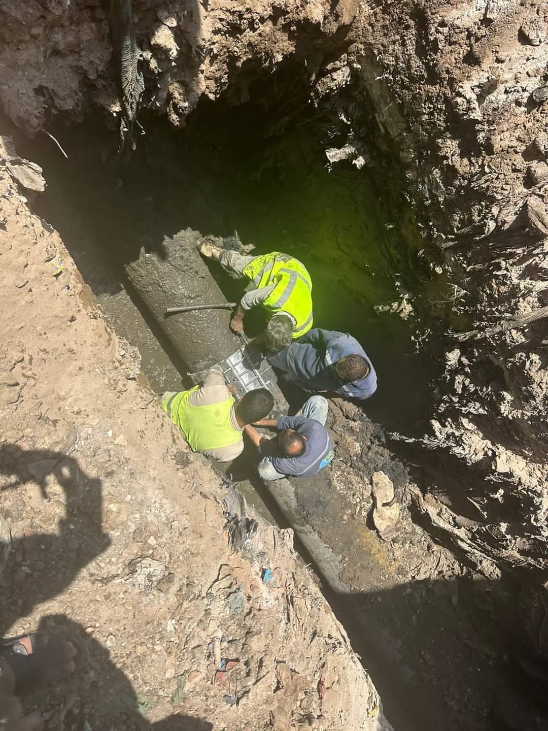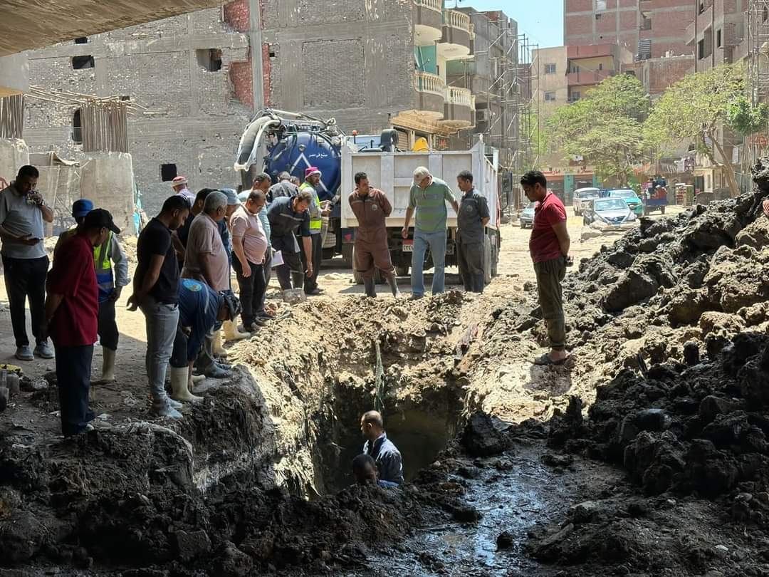 إصلاح كسر في خط المياه الرئيسي أسفل الطريق الدائري بالعمرانية (صور)