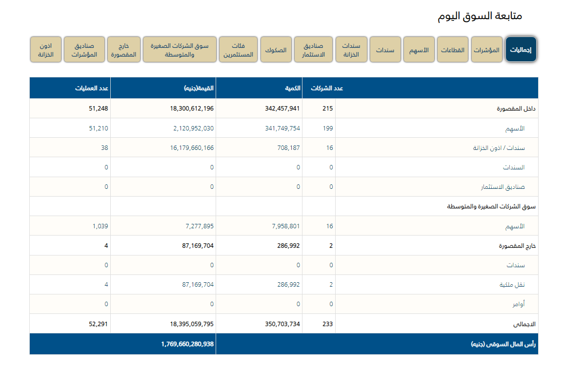 حركة تداولات اليوم بالبورصة المصرية