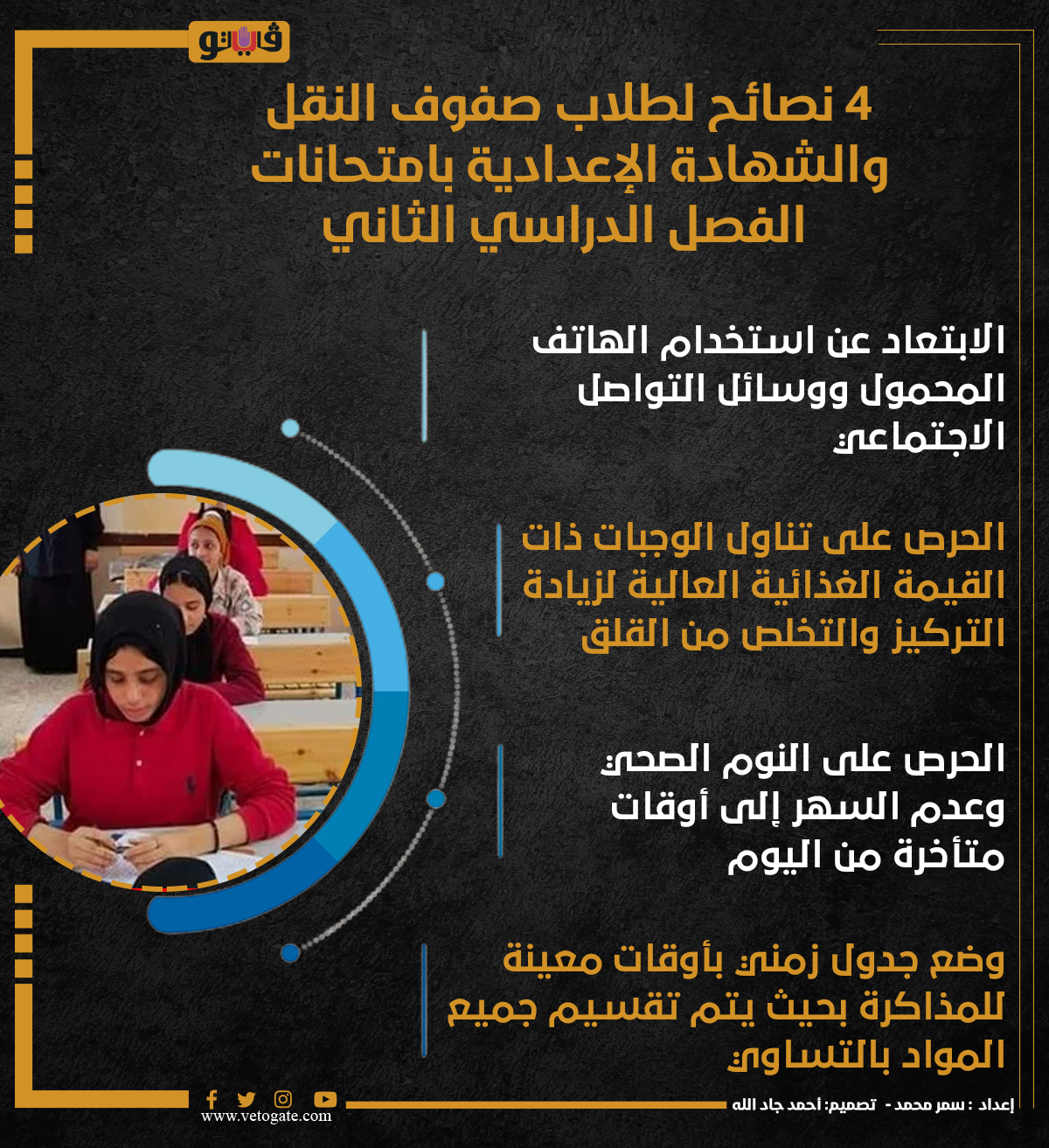 النقل للتعليم الثانوي العام: من الأحد 12 مايو إلى الخميس 23 مايو.