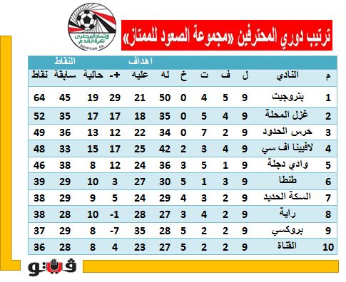 ترتيب دوري المحترفين، اختتمت اليوم مباريات دوري المحترفين مجموعة الصعود، وتأهل بتروجت وغزل المحلة إلي الدوري الممتاز، فيما تأهل حرس الحدود لدورة الترقي المؤهلة لأضواء والشهرة بعد إنتهاء الجولة الأخيرة من دوري المحترفين.