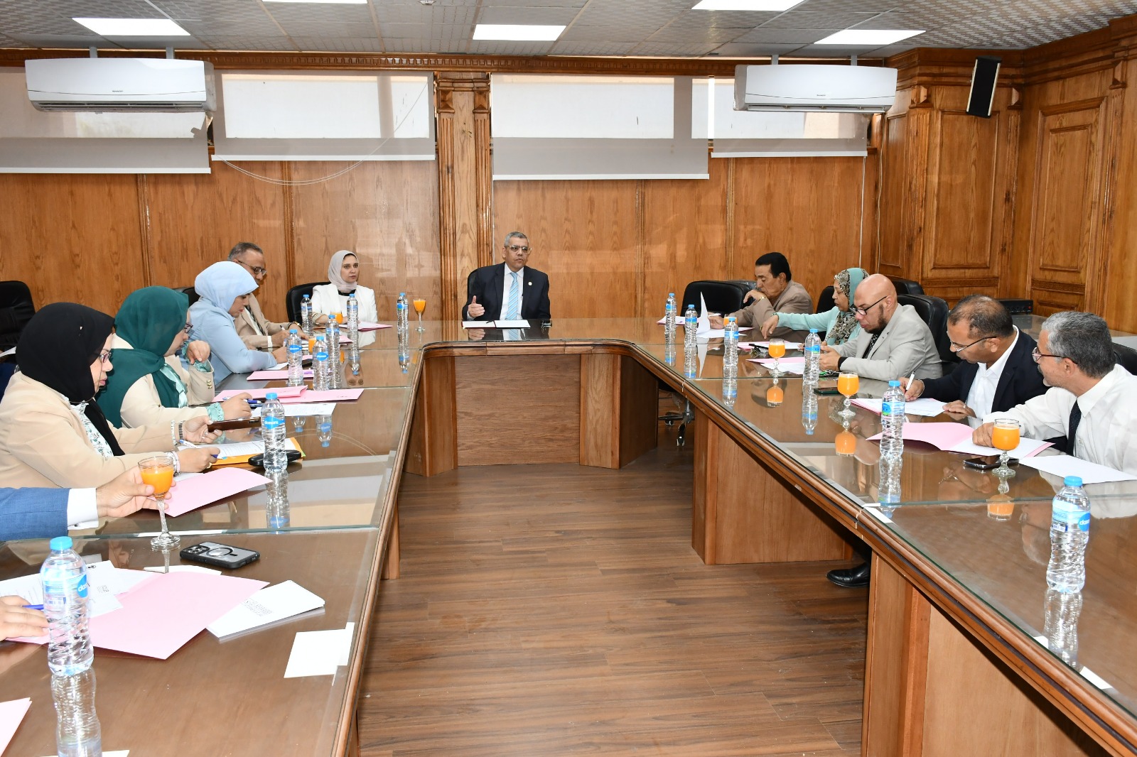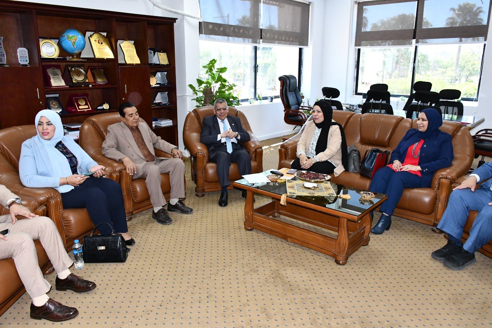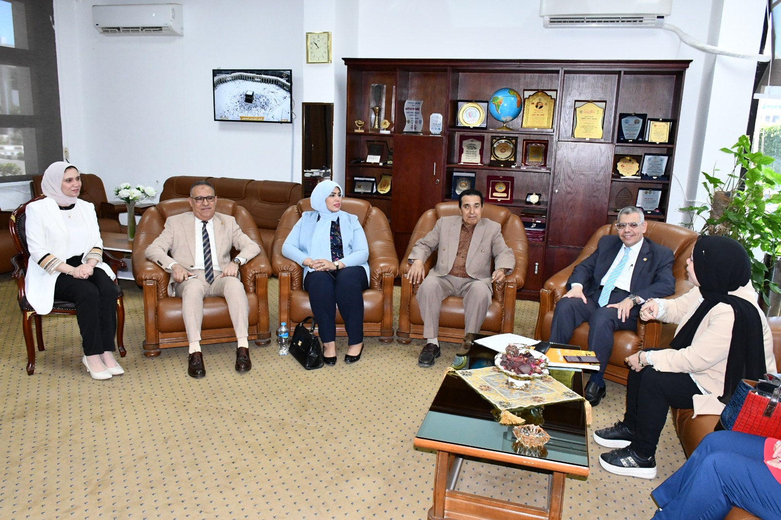 ومن جهة أخرى استقبل الدكتور محمد سعد زغلول نائب رئيس الجامعة لشئون الدراسات العليا والبحوث مجموعة من المتخصصين سواء من داخل الجامعة أو خارجة لعقد حلقة نقاشية حول تأسيس شركة مساهمة بالجامعة.
