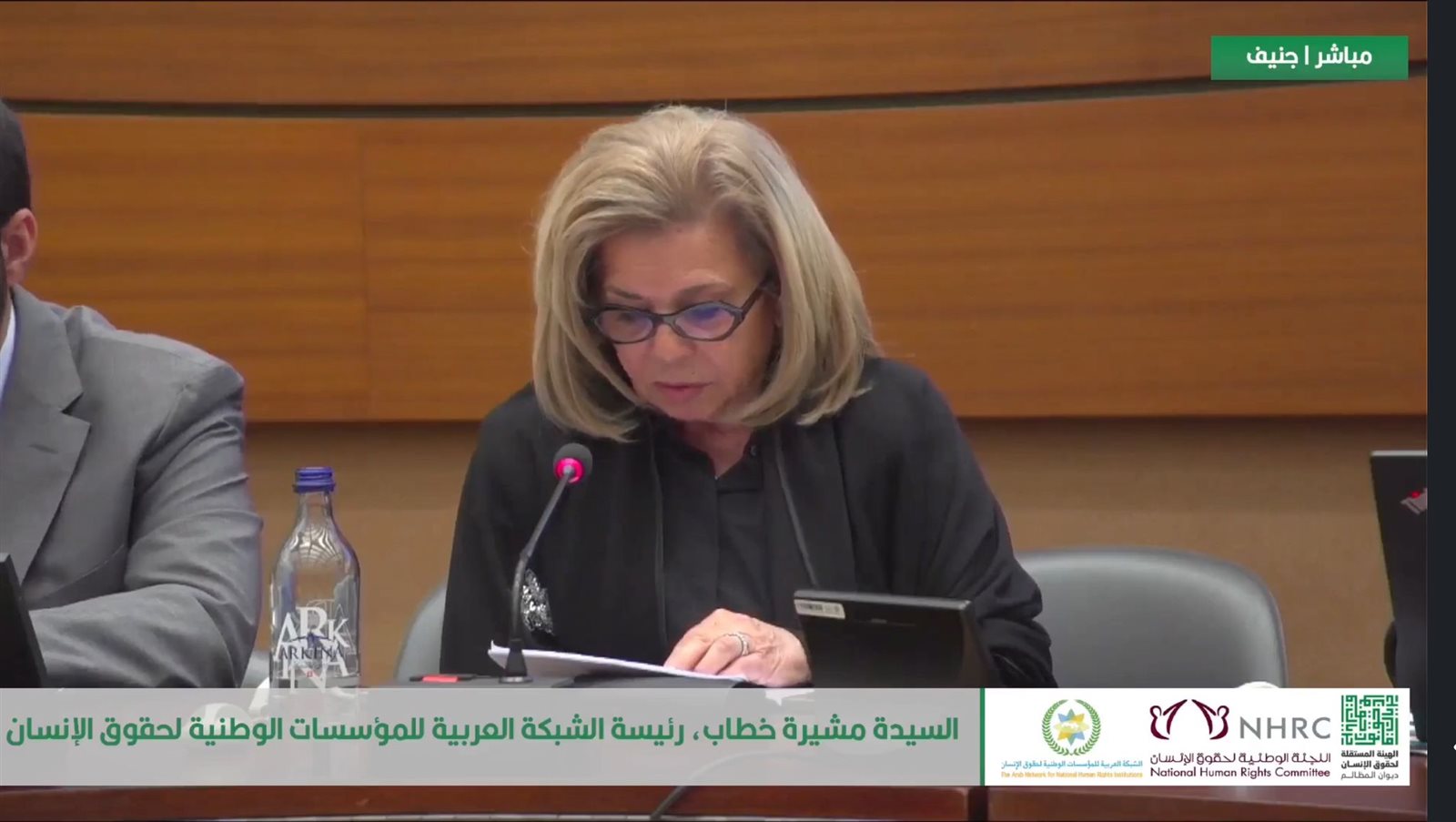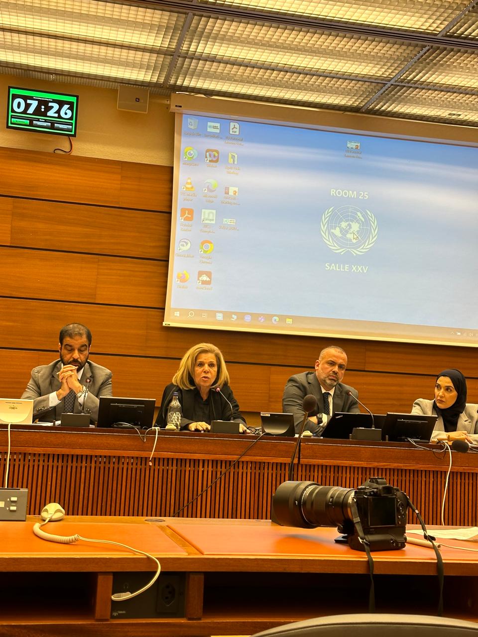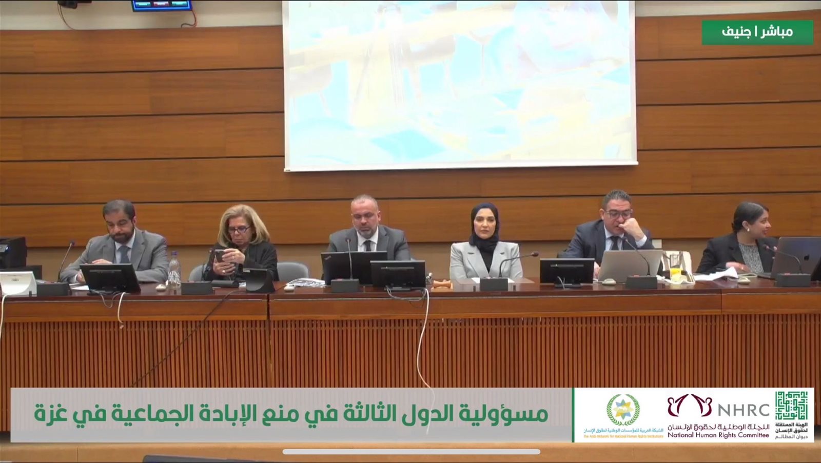 جاء ذلك في كلمتها التي ألقتها في الندوة التي أقامتها الشبكة العربية للمؤسسات الوطنية لحقوق الإنسان على هامش الاجتماع السنوي للتحالف العالمي للمؤسسات الوطنية لحقوق الإنسان وأقيمت بقصر الأمم المتحدة بجنيف تحت عنوان ( مسؤولية الدول الثالثة في منع الإبادة الجماعية في غزة )، بمشاركة مريم العطية رئيسة لجنة حقوق الإنسان بقطر، لوسي ميكرنان نائب مدير هيومان رايتس واتش، عمار دويك مدير عام الهيئة المستقلة لحقوق الإنسان بفلسطين.انيشا باليل عضوة مجلس إدارة منظمة فلسطين من اجل القانون، سلطان الجمالي الأمين العام للشبكة العربية للمؤسسات الوطنية لحقوق الإنسان.