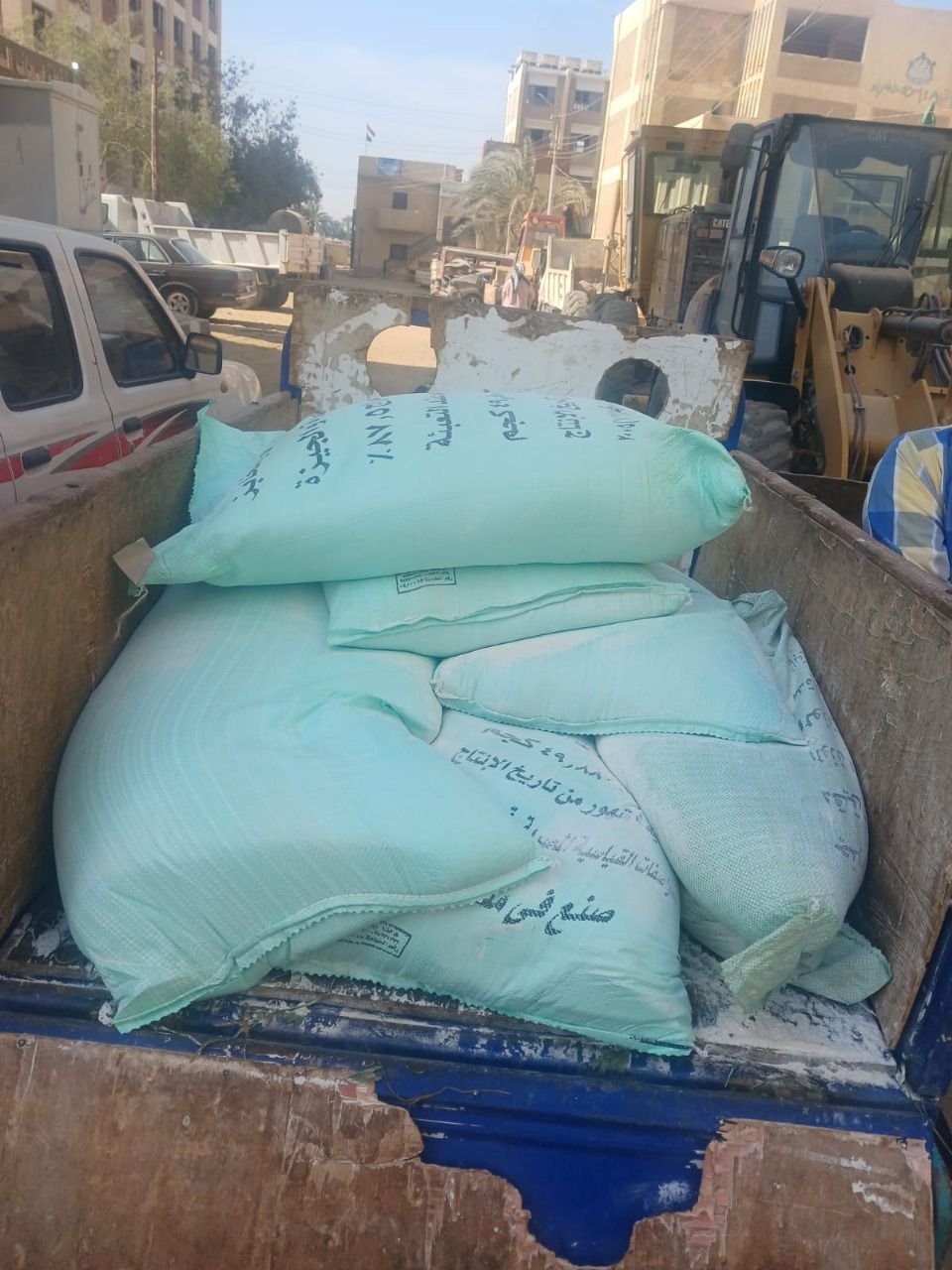وتم التحفظ علي 55 كرتونة هريسة مجهولة المصدر، و59 طنًا و384 كجم سكر، و1844 علبة معسل، و350 كيلو جرام فول بدون سعر، و380 لتر بنزين وسولار، و100 كيلو جرام فول مجروش بدون سعر، و320 عبوة منظفات مجهولة المصدر، و112 عبوة دهانات مجهولة المصدر وبدون فواتير، وعدد 2000 قطعة صواريخ وشماريخ وألعاب نارية محظور بيعها وتداولها.