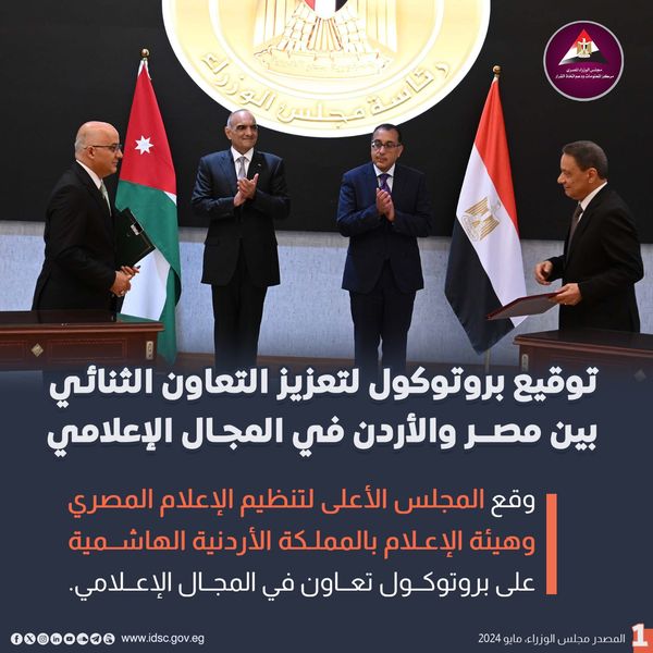 سلط مركز معلومات مجلس الوزراء الضوء على أبرز مجالات بروتوكول التعاون بين مصر والأردن في مجال الإعلام.