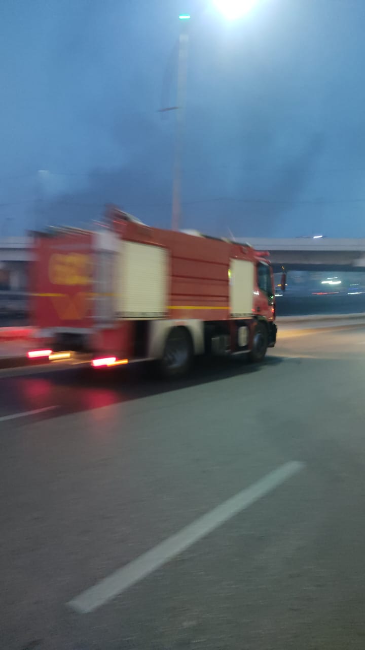 سيارات الإطفاء تحاول السيطرة على الحريق